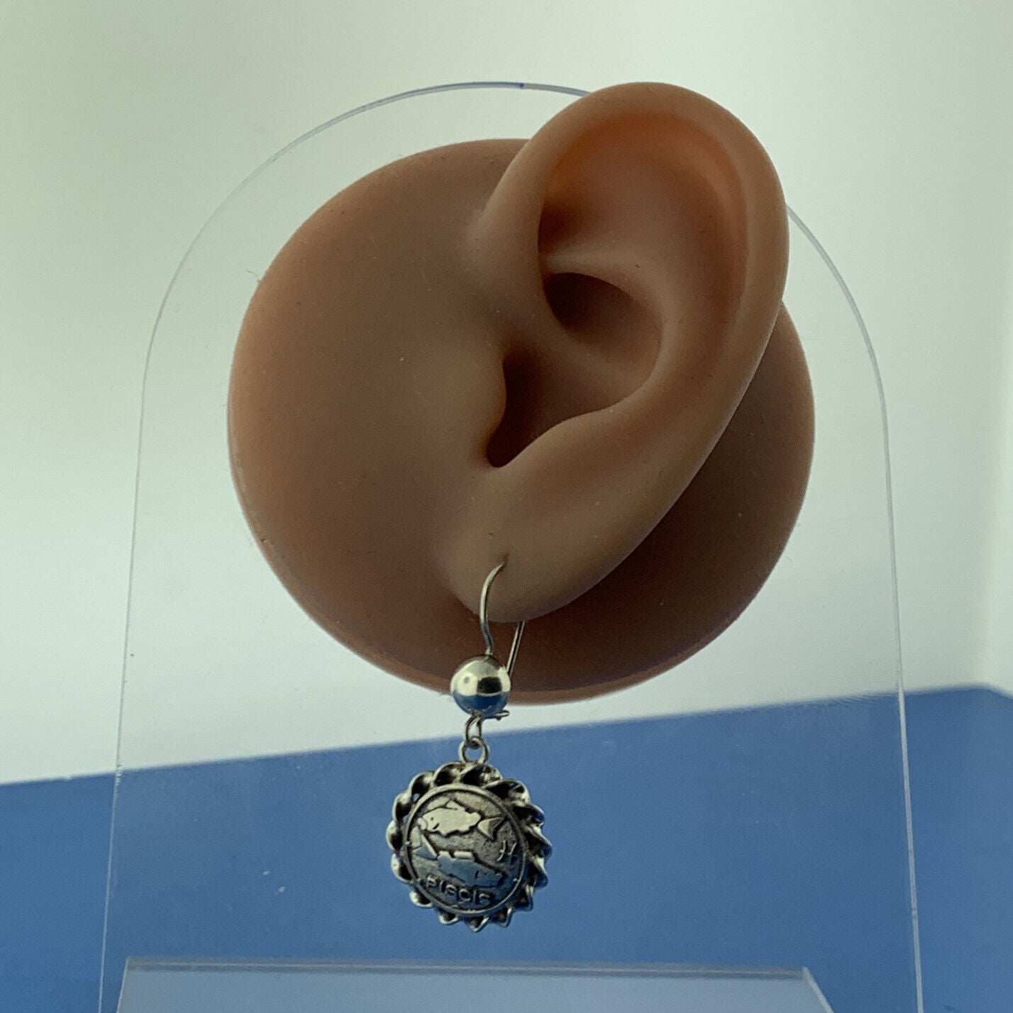 Mid Century Mexico 925 Sterling Silver Piscis Astronomy Drop Dangle Earrings