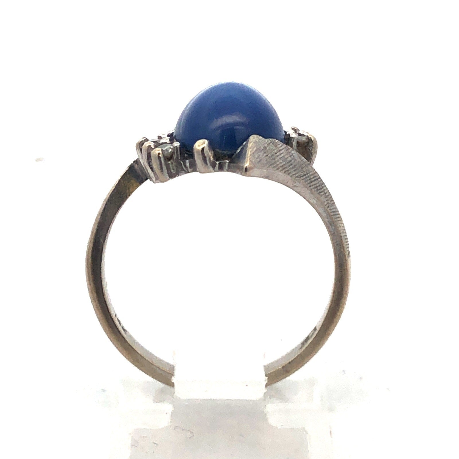 Mid Century Modern 14K White Gold Blue Star Sapphire Diamond Cocktail Ring