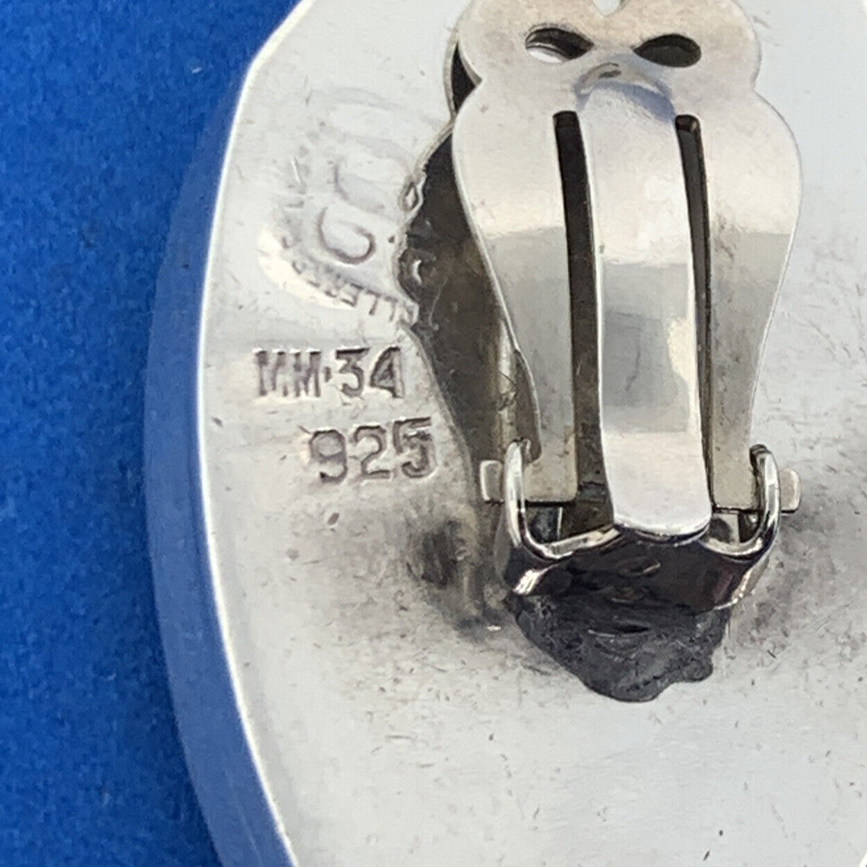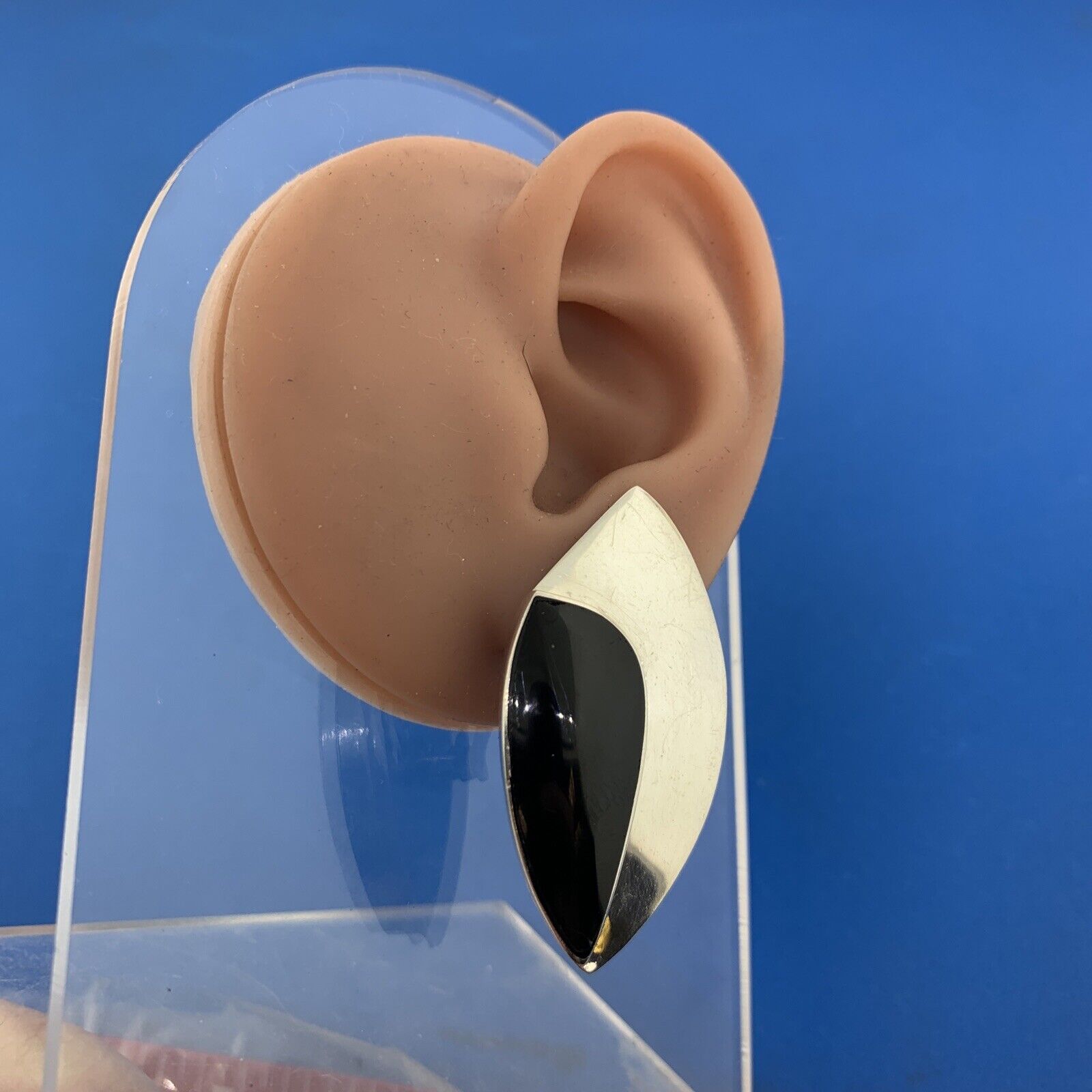 - Mid Century Taxco Los Ballesteros Sterling Silver Onyx Modernist Clip Earrings