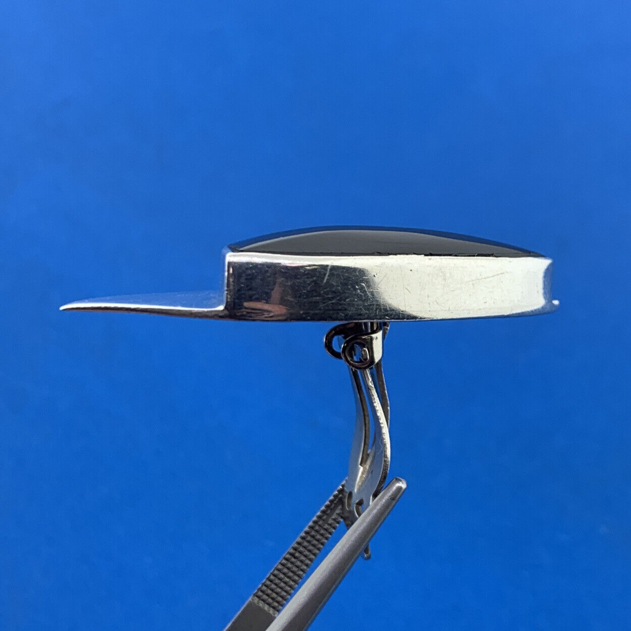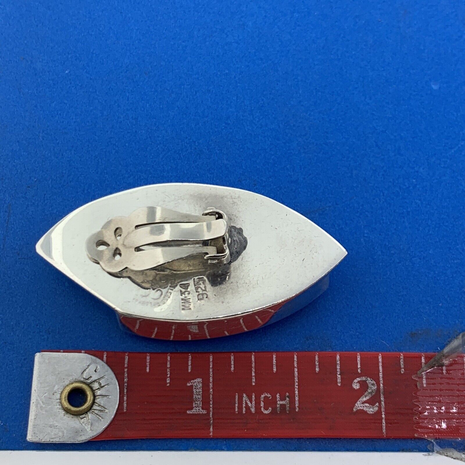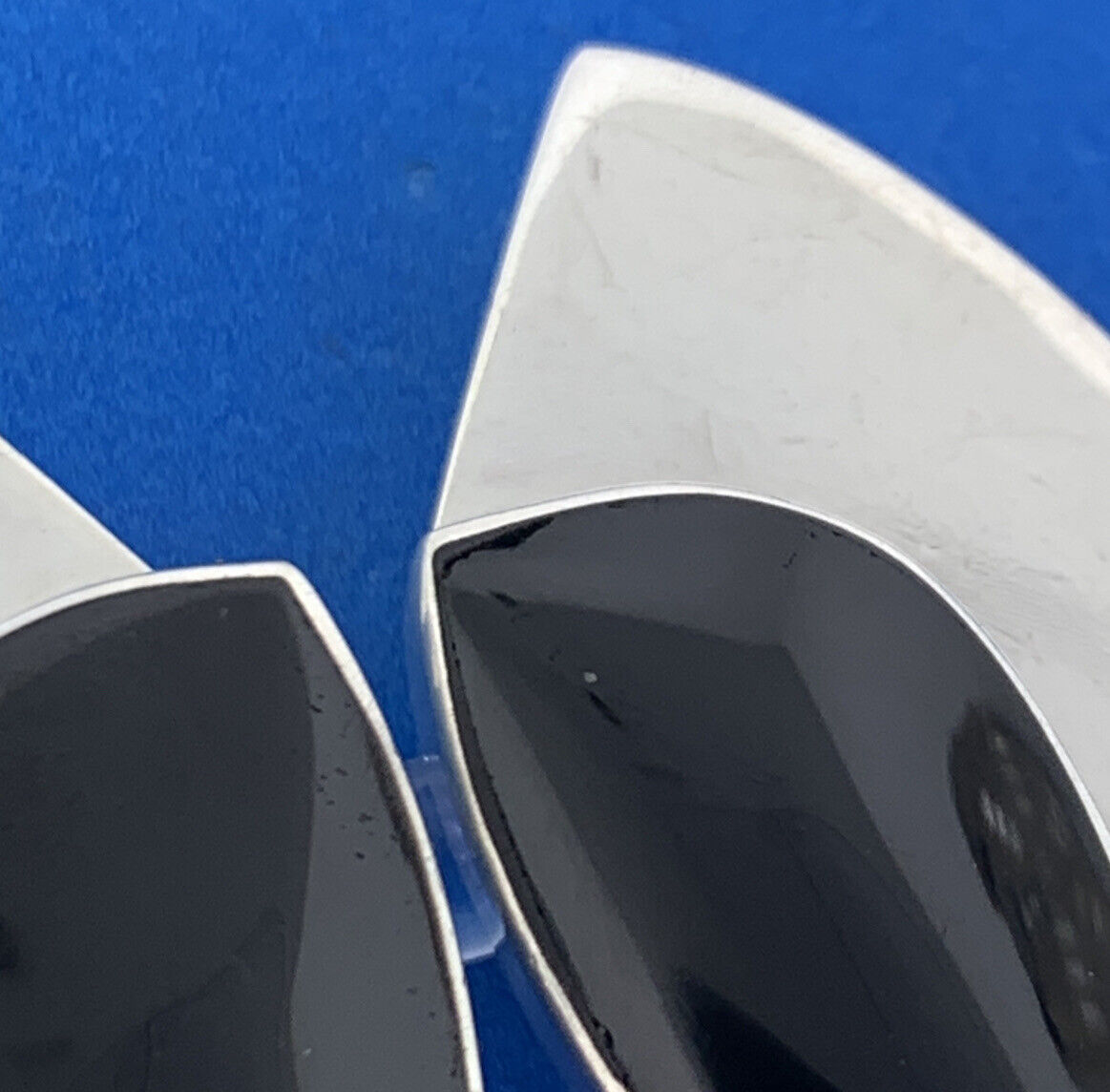 Mid Century Taxco Los Ballesteros Sterling Silver Onyx Modernist Clip Earrings