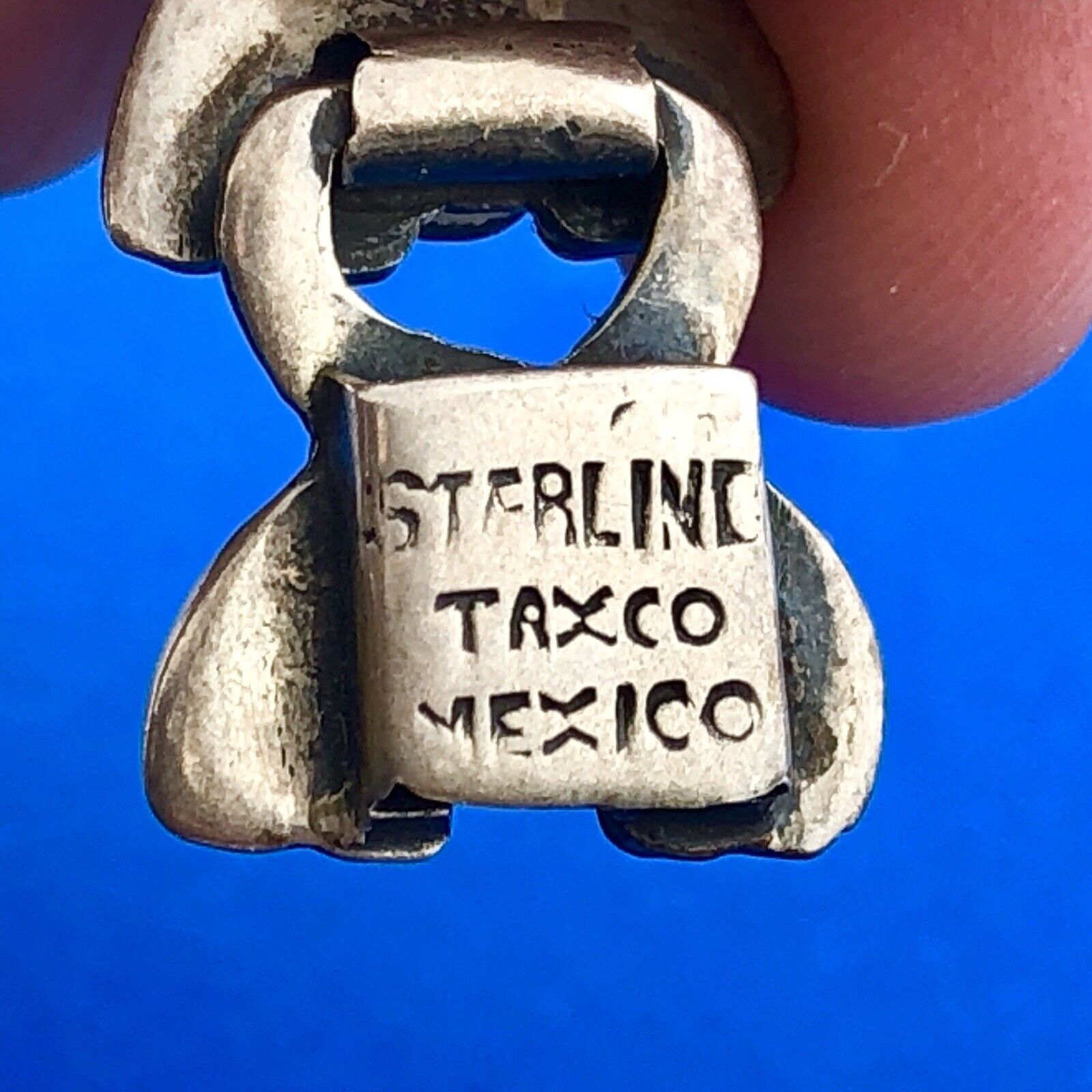 Mid Century Taxco Mexico 925 Sterling Silver Malachite Scroll Panel Necklace