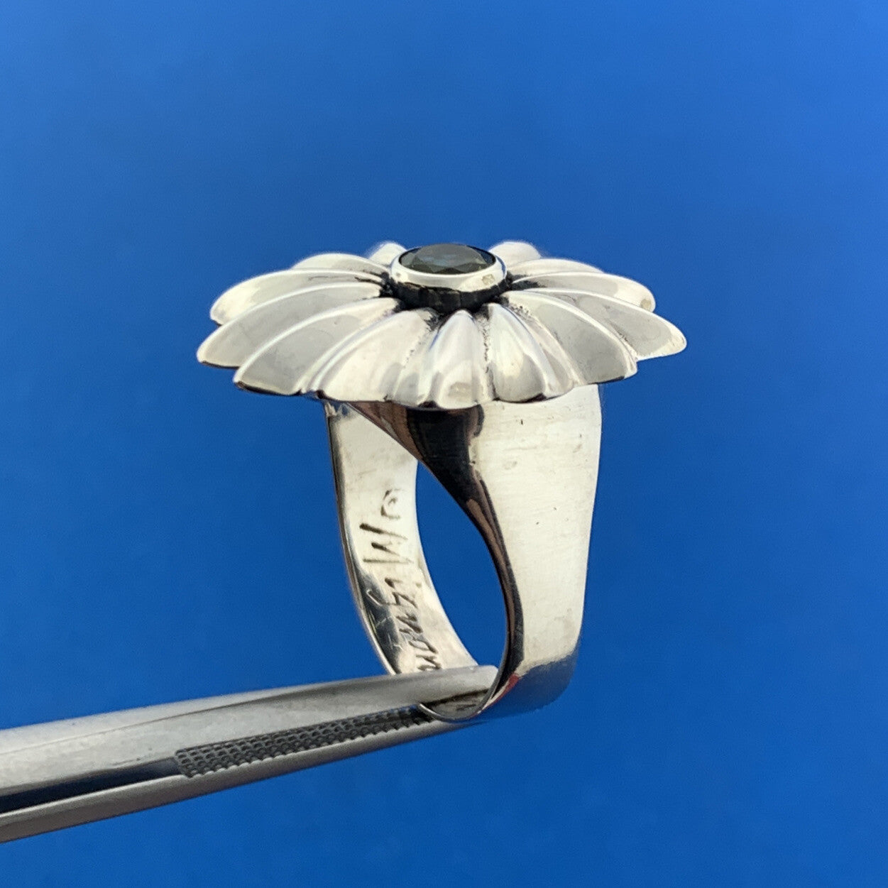 - Mignon Faget Sterling Silver Peridot Portafiori Flower August Anniversary Ring