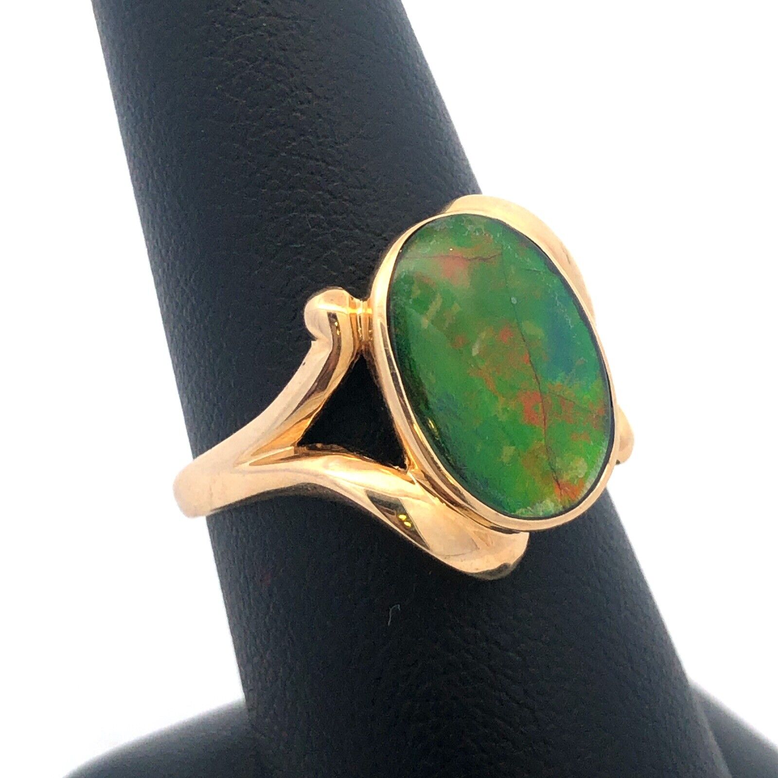 Modernist 14K Yellow Gold Orange Green Opal Oval Doublet Cocktail Ring