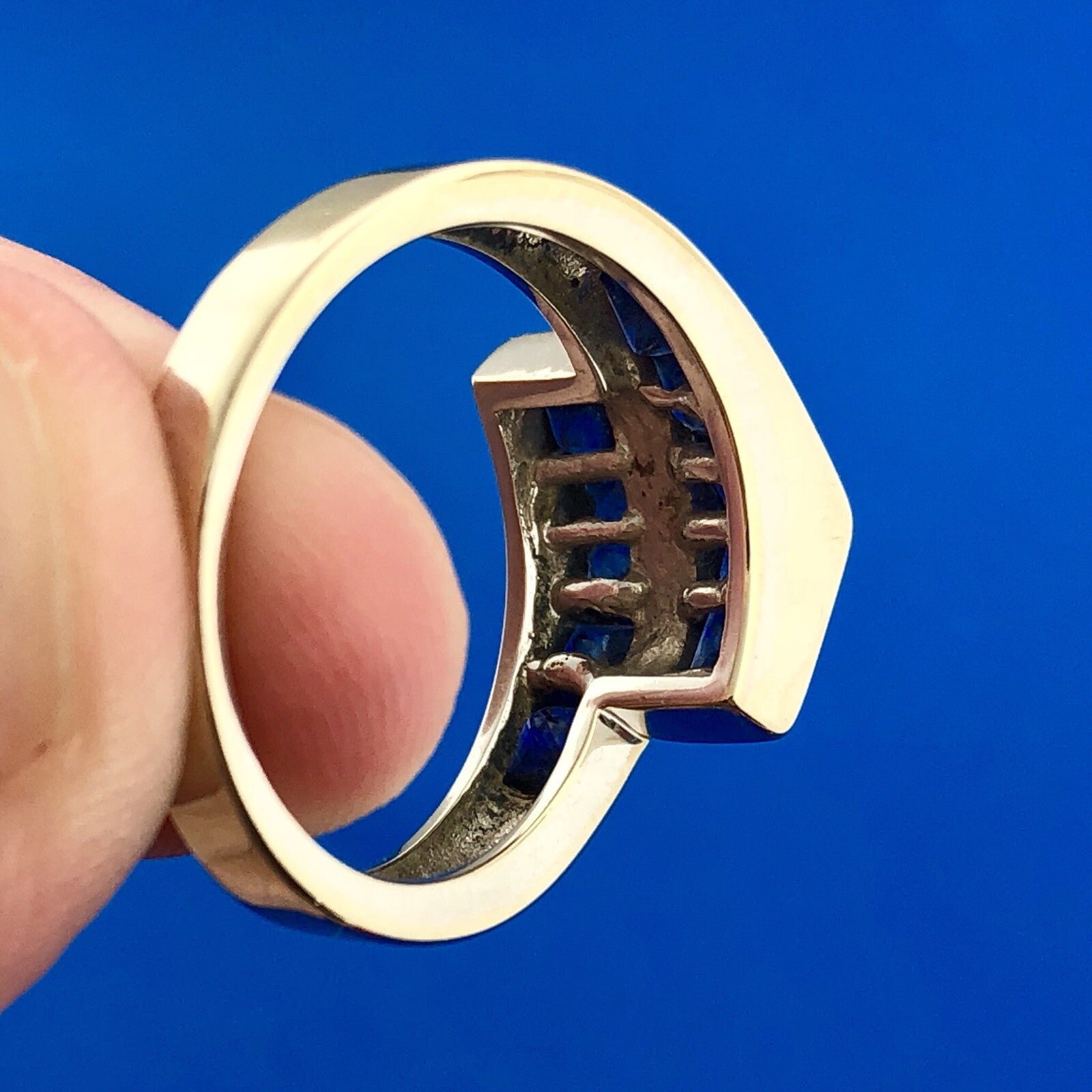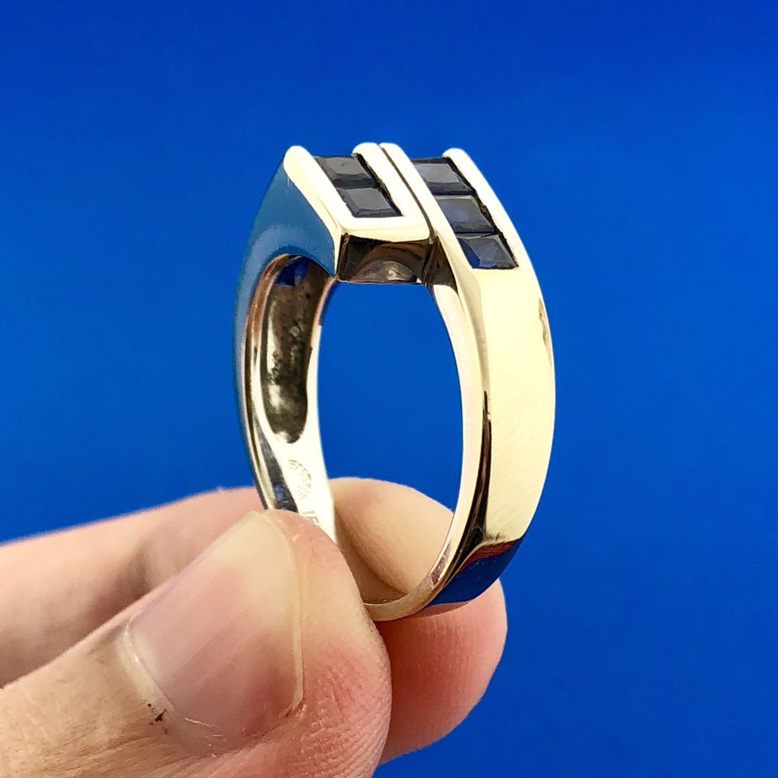 Square Cut Sapphires measure: approximately 3.0 mm x 3.0 mm each