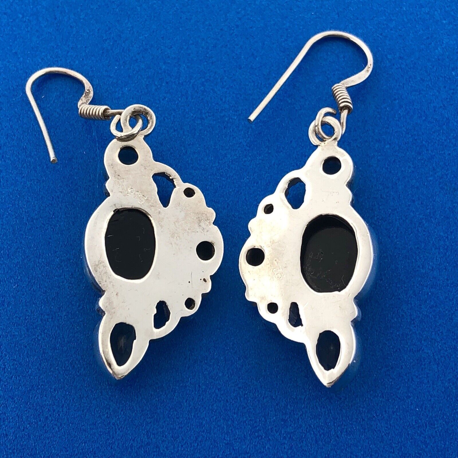 Modernist 925 Sterling Silver Black Onyx Smoky Quartz Drop Dangle Earrings
