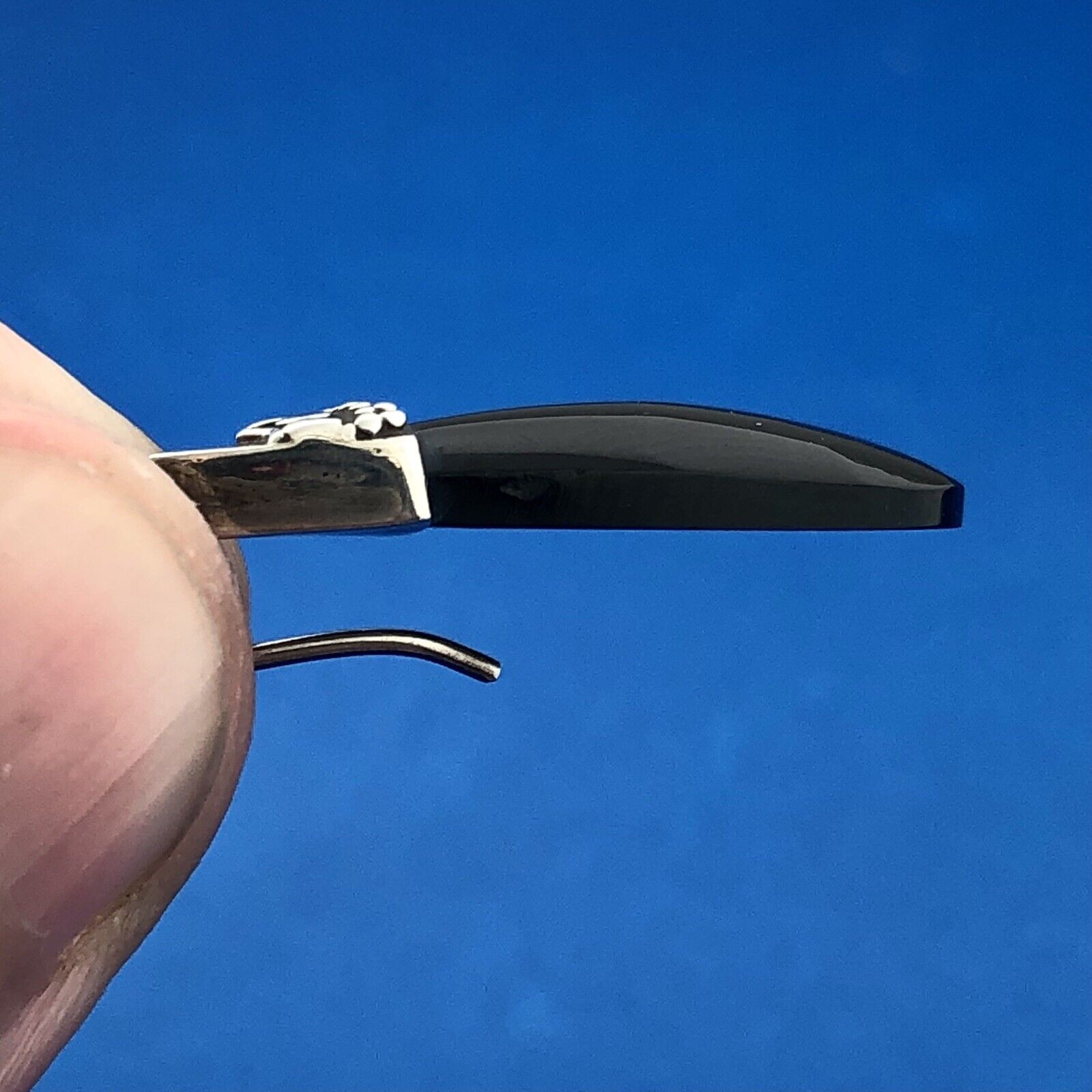 Modernist 925 Sterling Silver Black Resin Pear Beadwork Drop Dangle Earrings