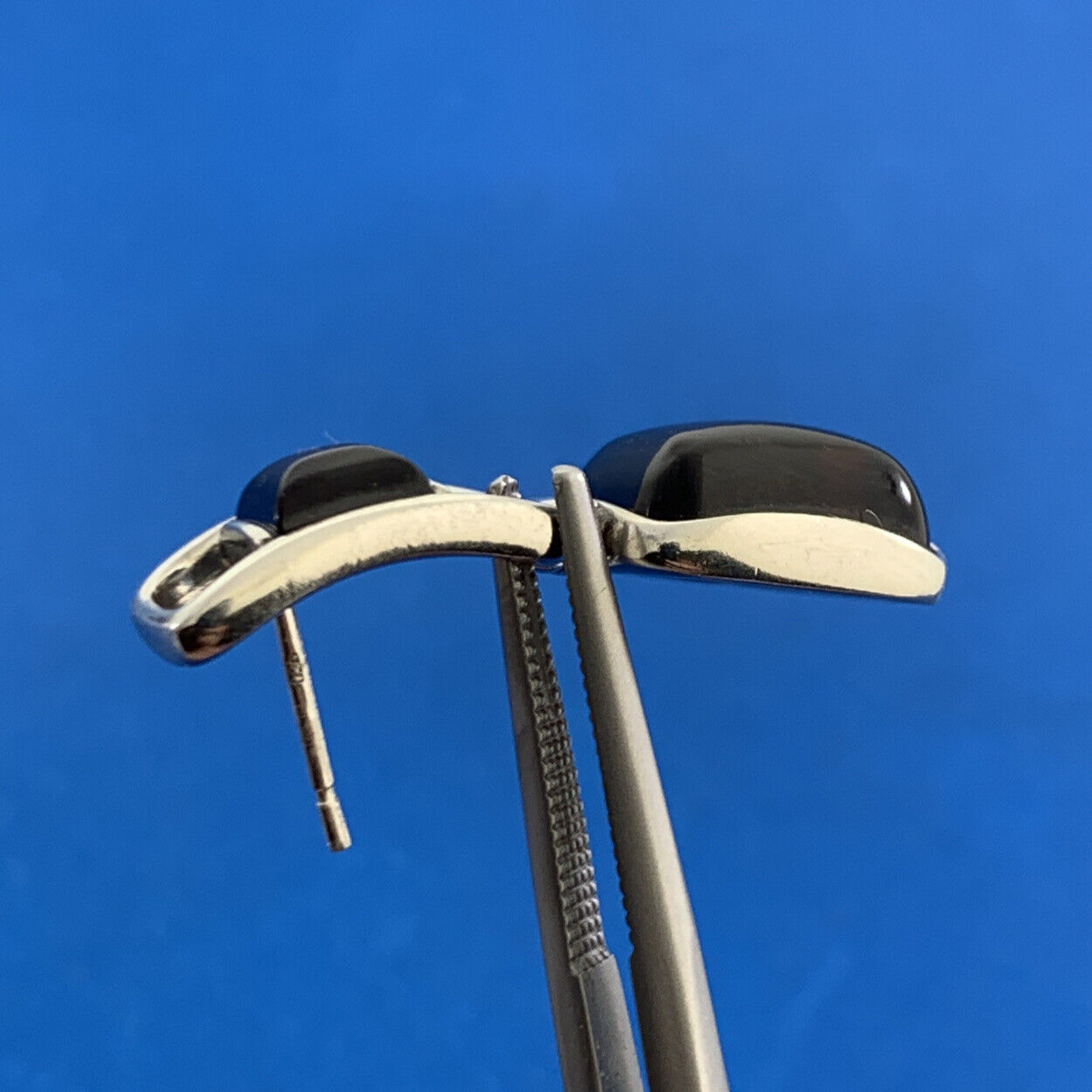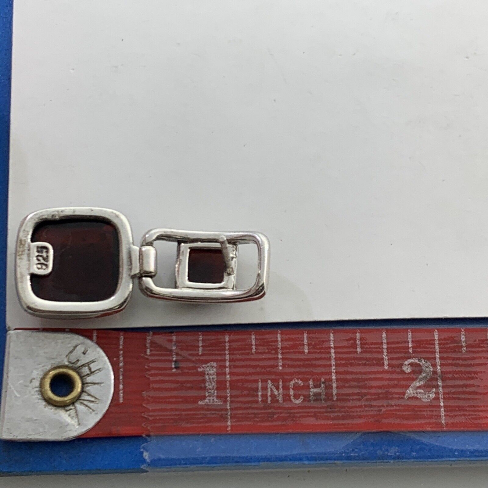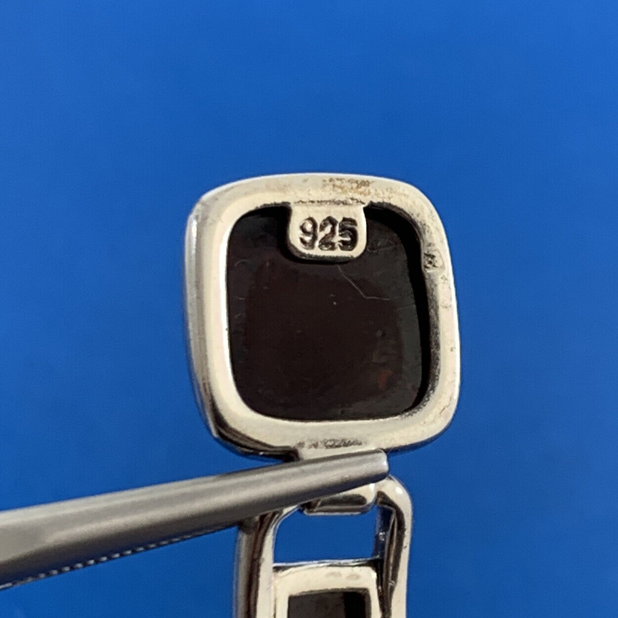 - Modernist 925 Sterling Silver Garnet Cabochon Statement Dangle Stud Earrings