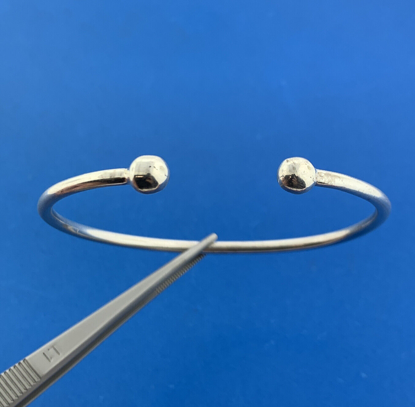- Modernist 925 Sterling Silver Polished Ball Capped Open Cuff Bracelet