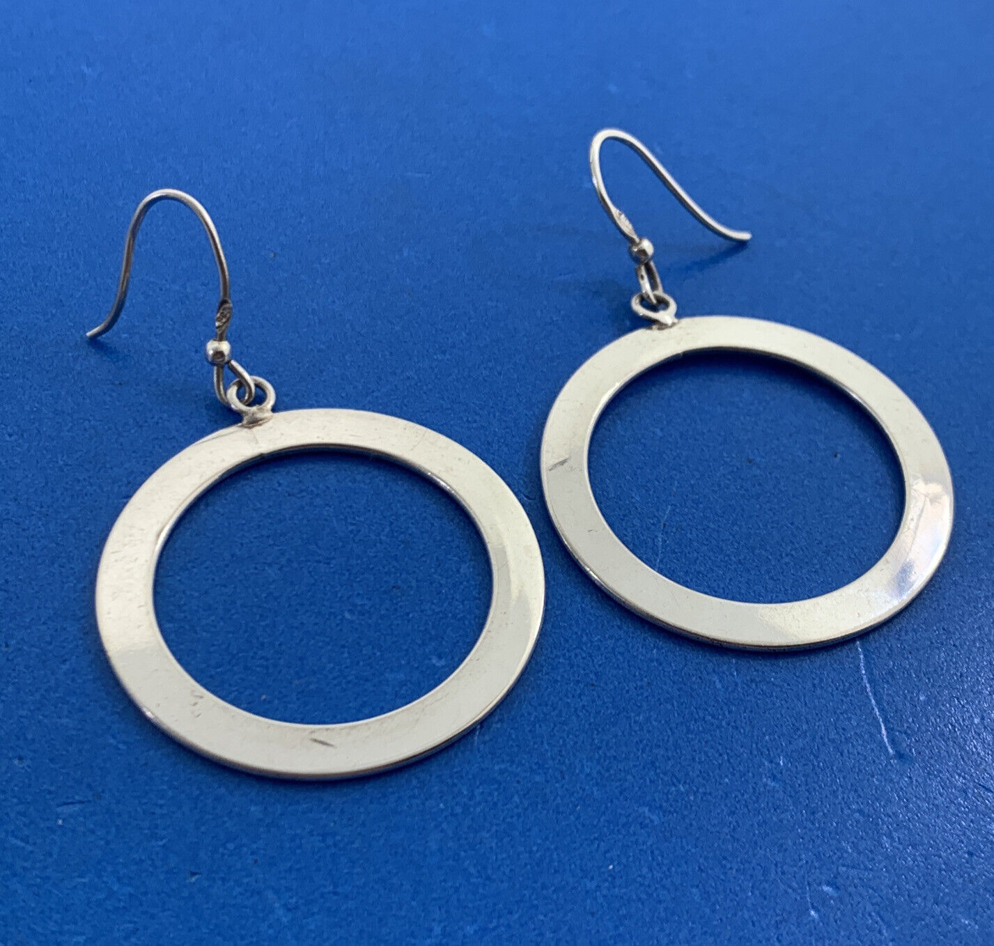 - Modernist Cutout 925 Sterling Silver Round Simple Hook Dangle Earrings