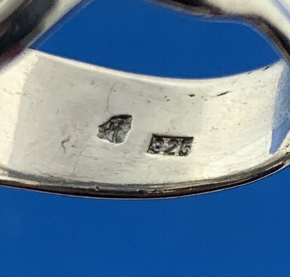 - Modernist Designer 925 Sterling Silver Opal Cabochon Cigar Band Ring
