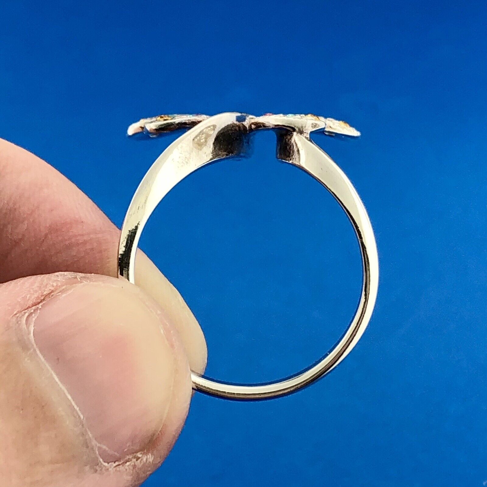 Modernistic Sterling Silver Pink Blue Yellow Cubic Zirconia CZ Butterfly Ring