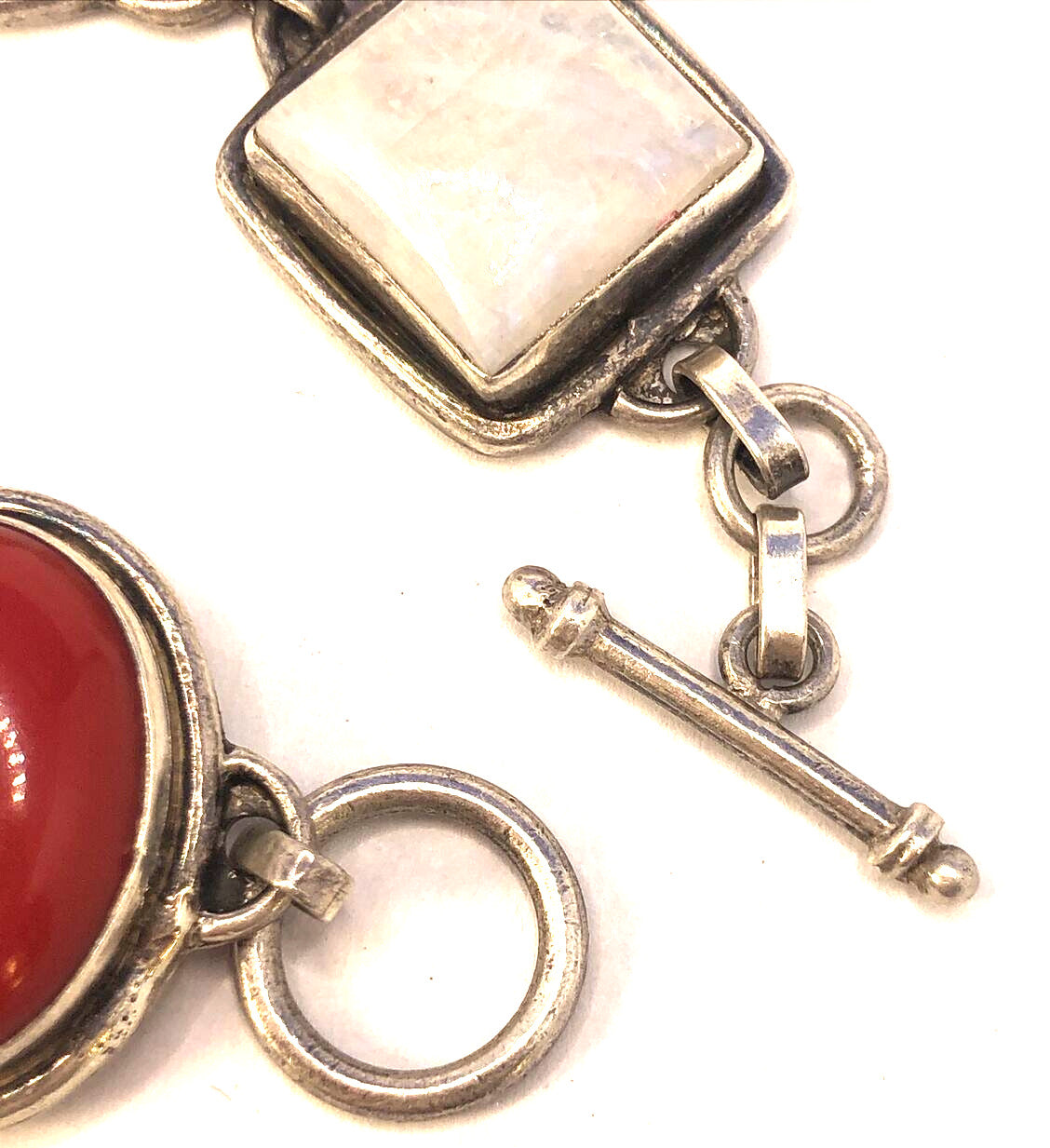 Multi Stone 925 Sterling Silver Chunky Statement Toggle Bracelet