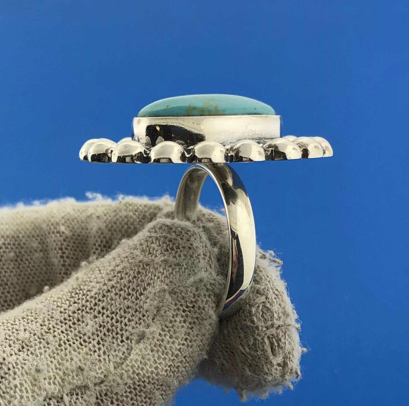 - MWS Mexican Sterling Silver 925 Oval Cabochon Turquoise Statement Ring Size 6