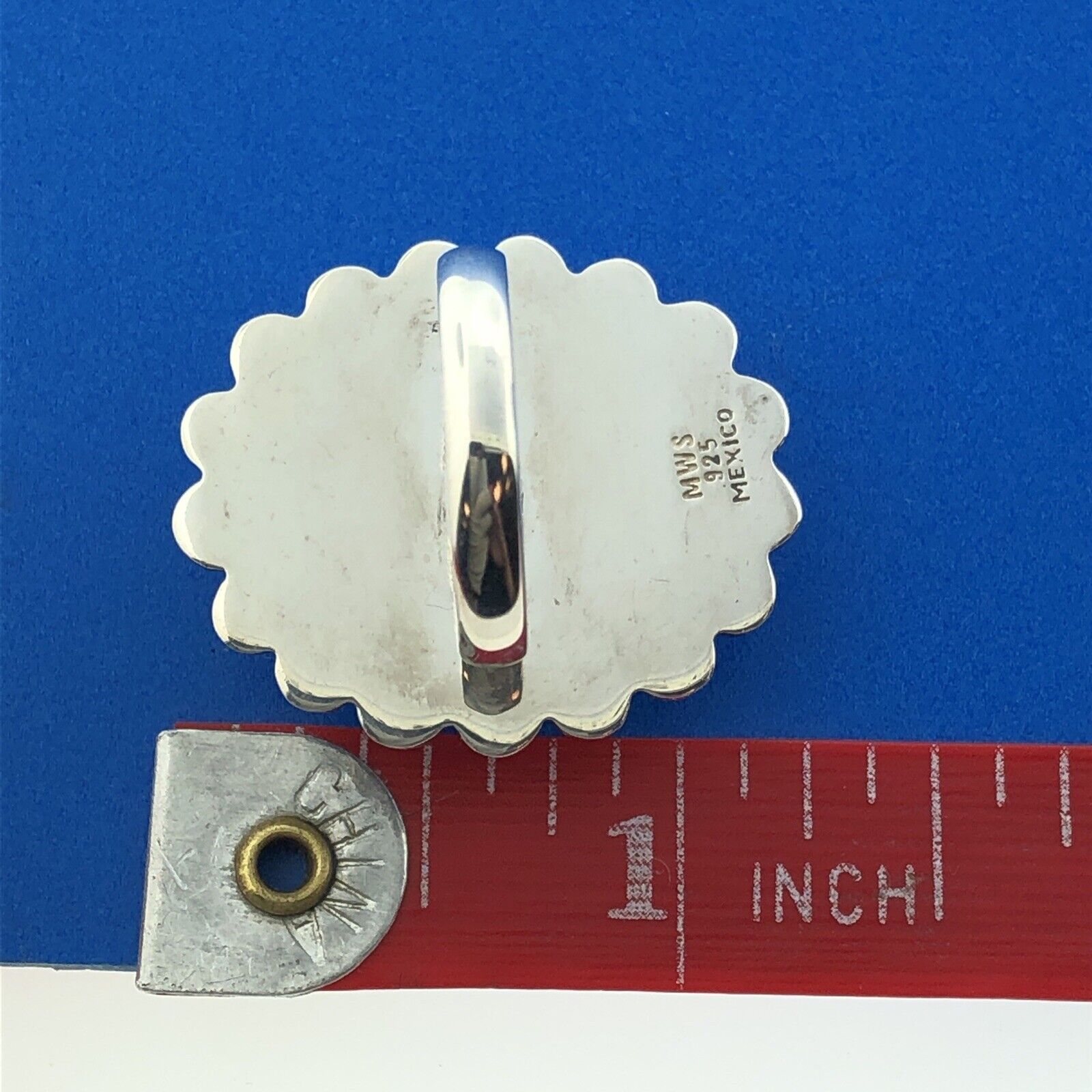 MWS Mexican Sterling Silver 925 Oval Cabochon Turquoise Statement Ring Size 6