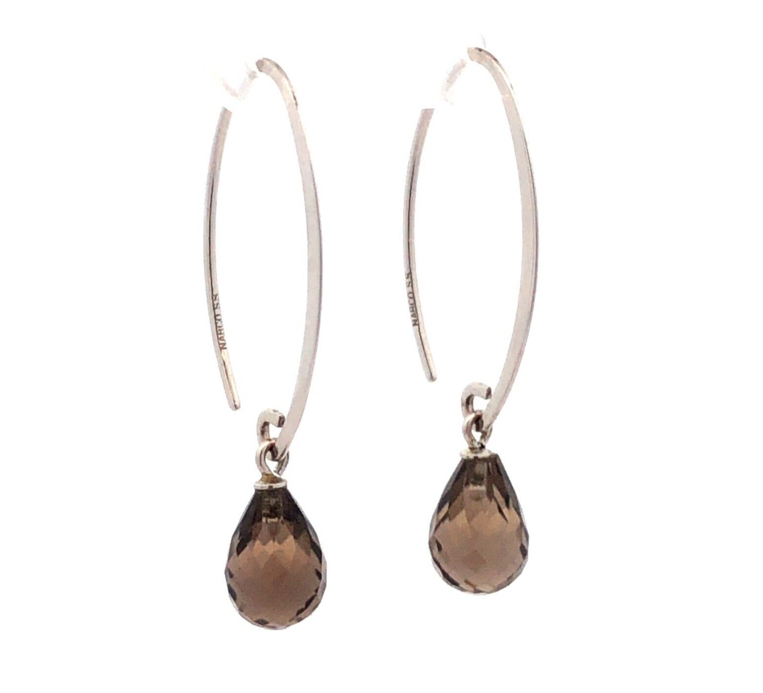 - Nabco 925 Sterling Silver Teardrop Smoky Quartz Modernist Threader Earrings