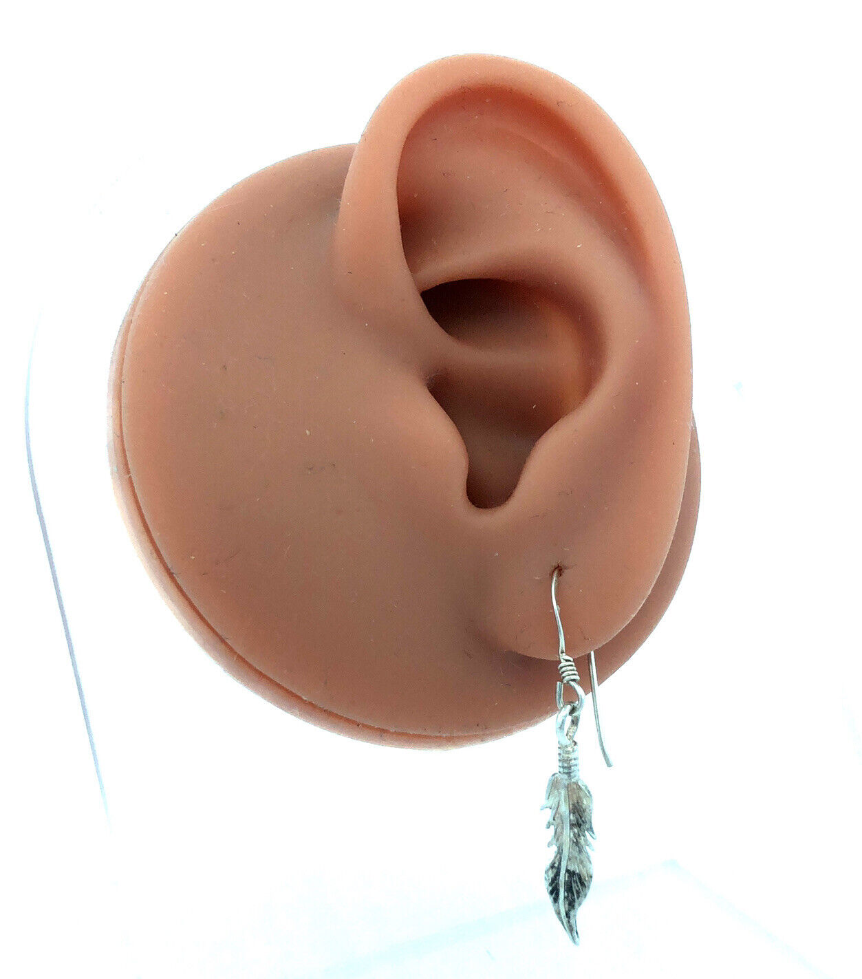 Native American 925 Sterling Silver Feather Drop Dangle Hook Earrings