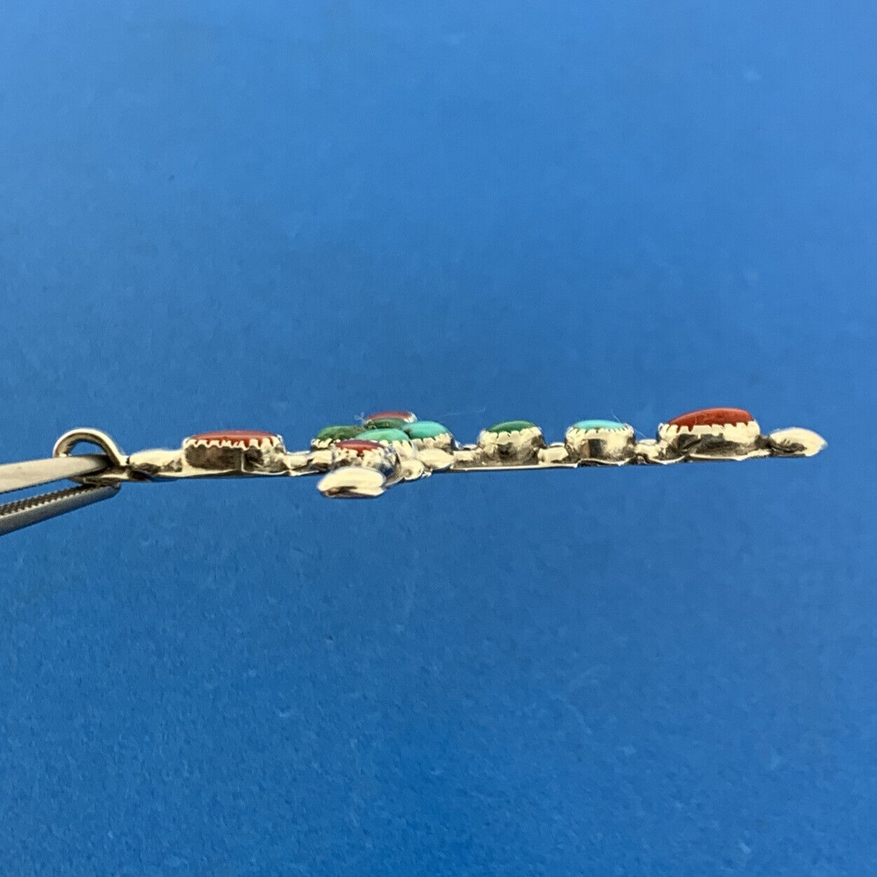 Native American Artisan Signed 925 Sterling Silver Turquoise Coral Cross Pendant