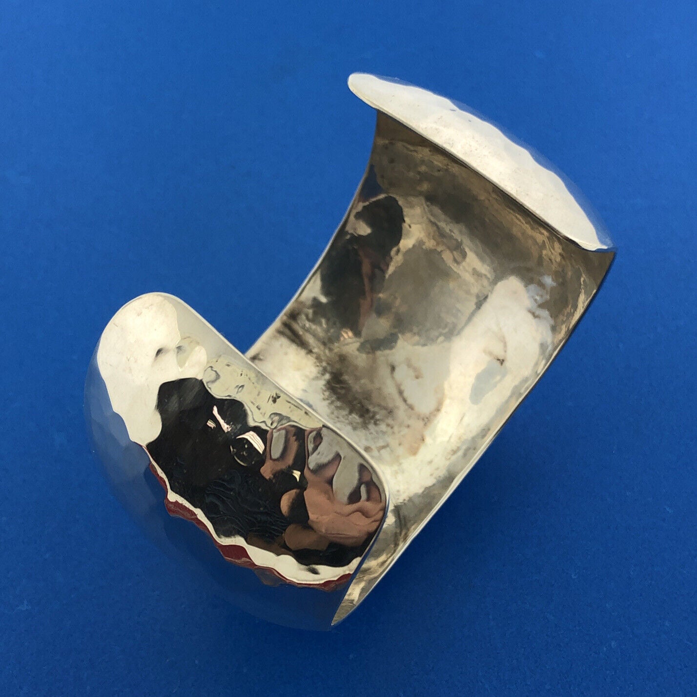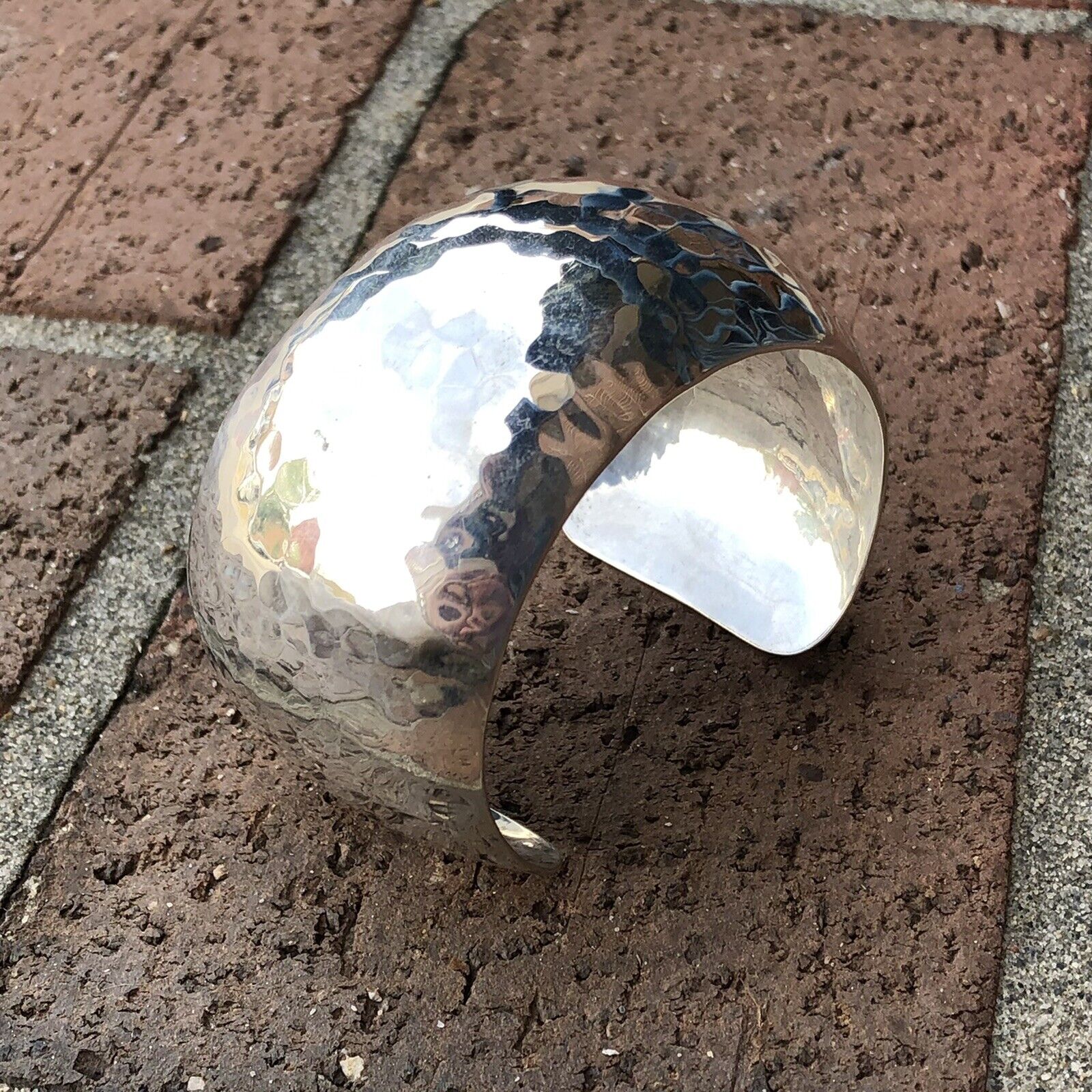 - Native American Artisan Signed Sterling Silver Hammered Statement Cuff Bracelet