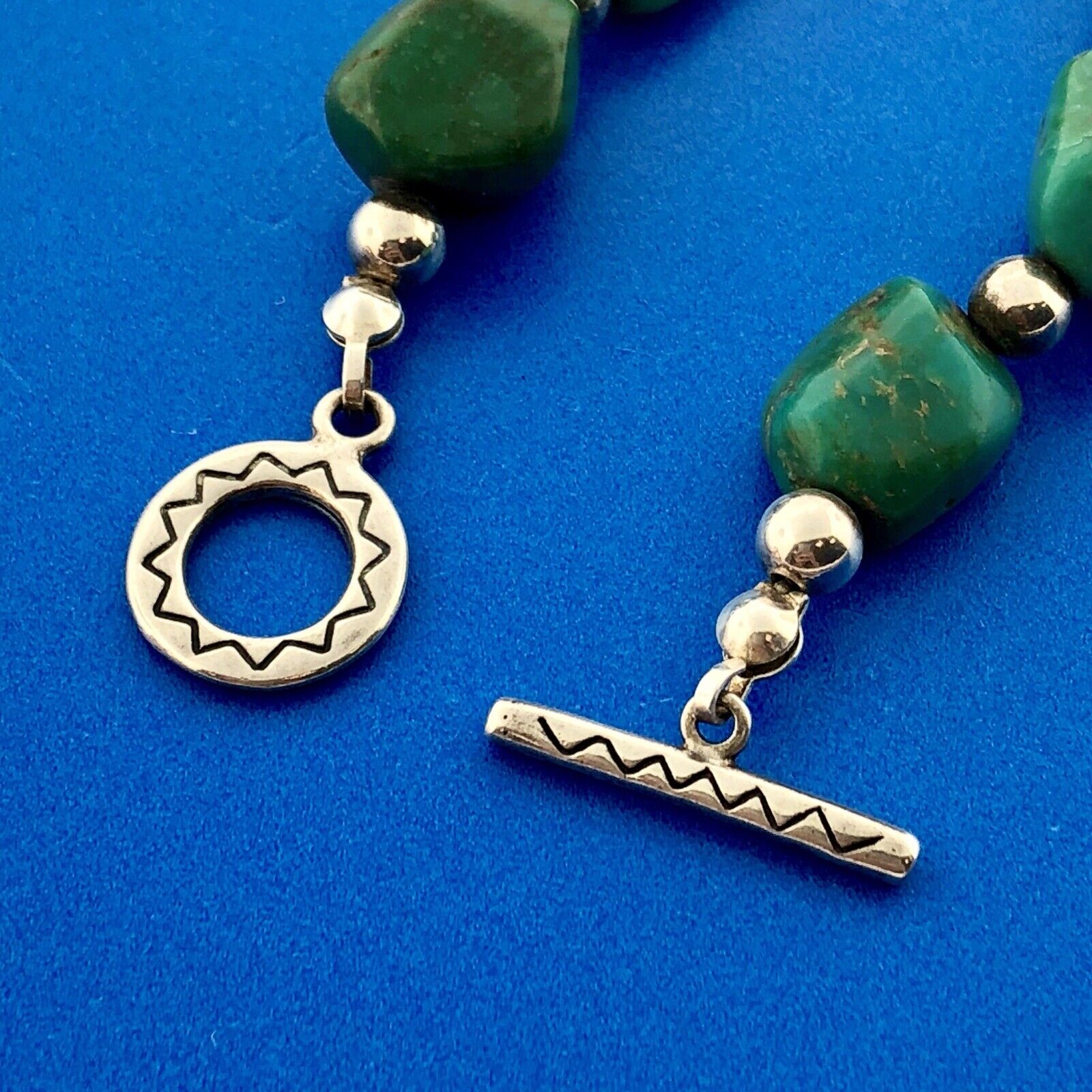 - Native American Artisan Sterling Silver 925 Turquoise Chunky Toggle Bracelet