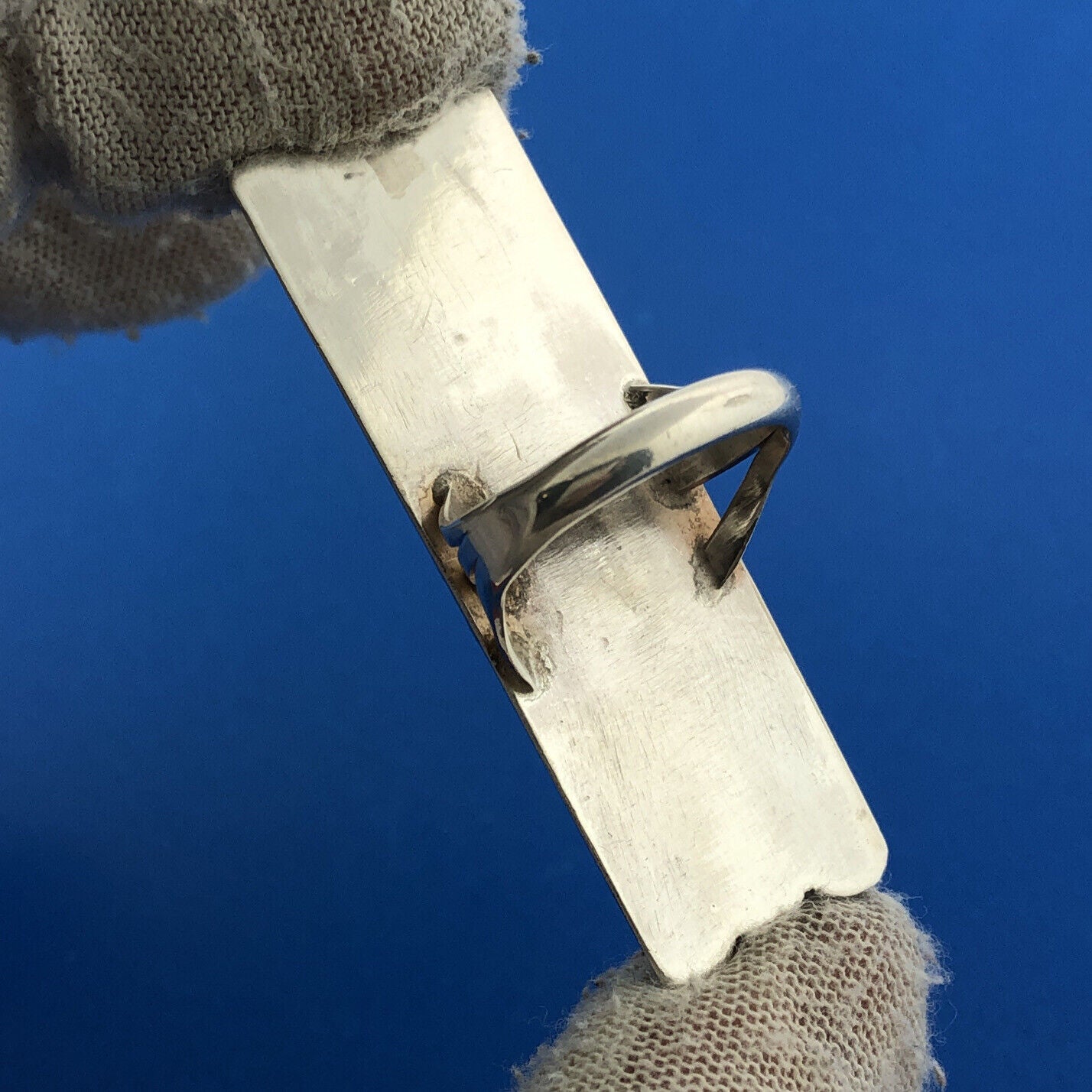 - Native American Artisan Sterling Silver Coral Turquoise Rectangle Statement Ring