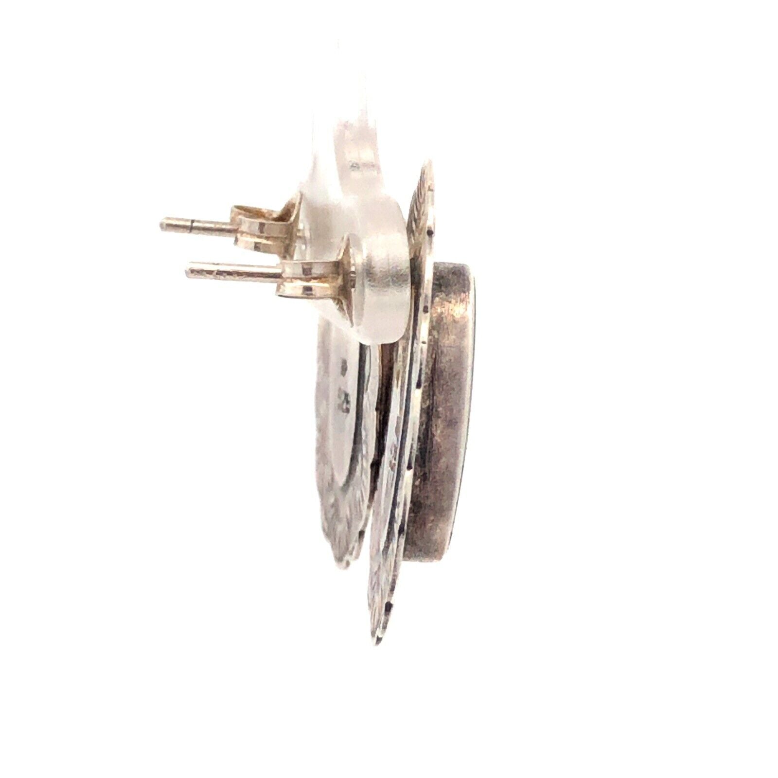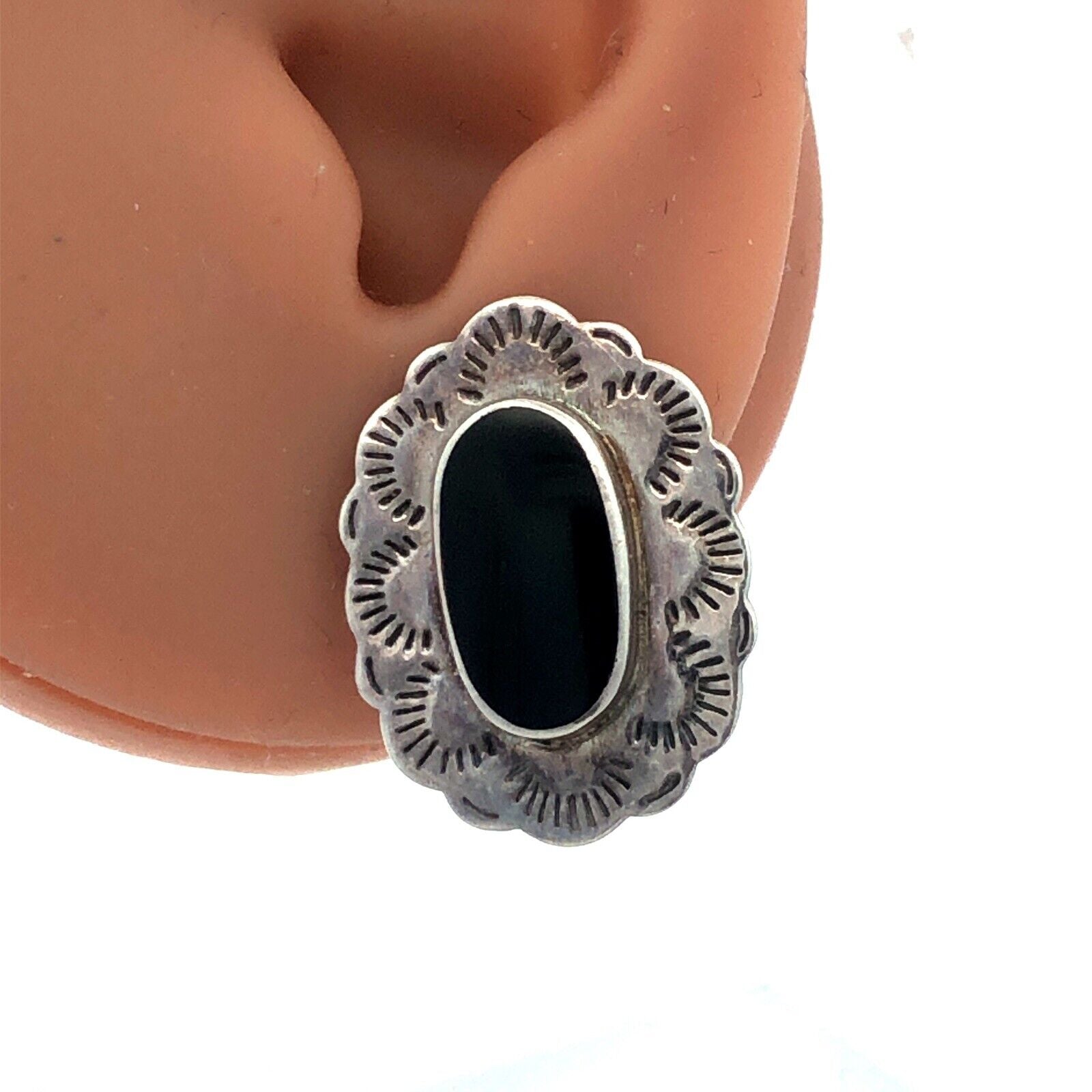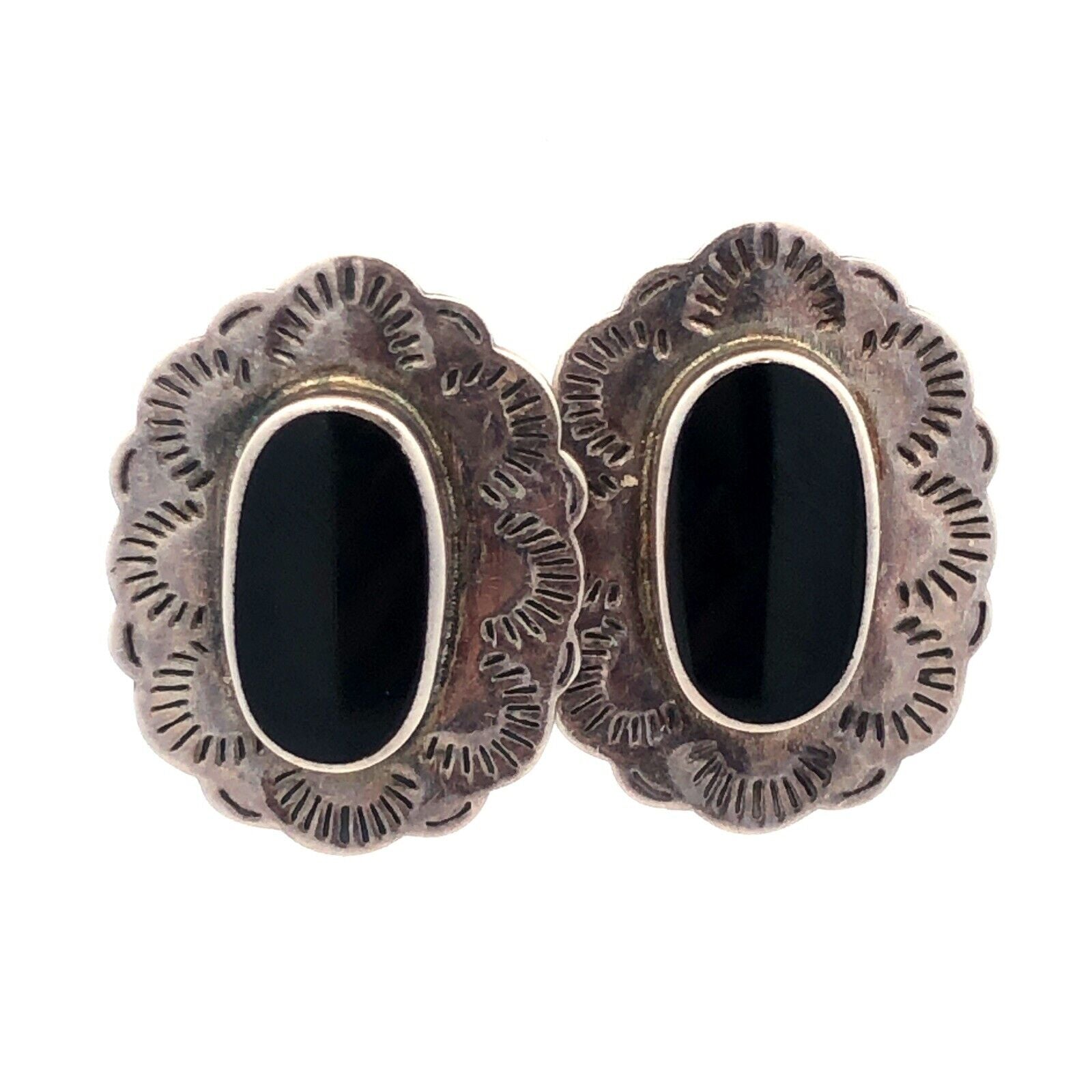 Native American Marked 925 Sterling Silver Oval Black Onyx Concho Stud Earrings