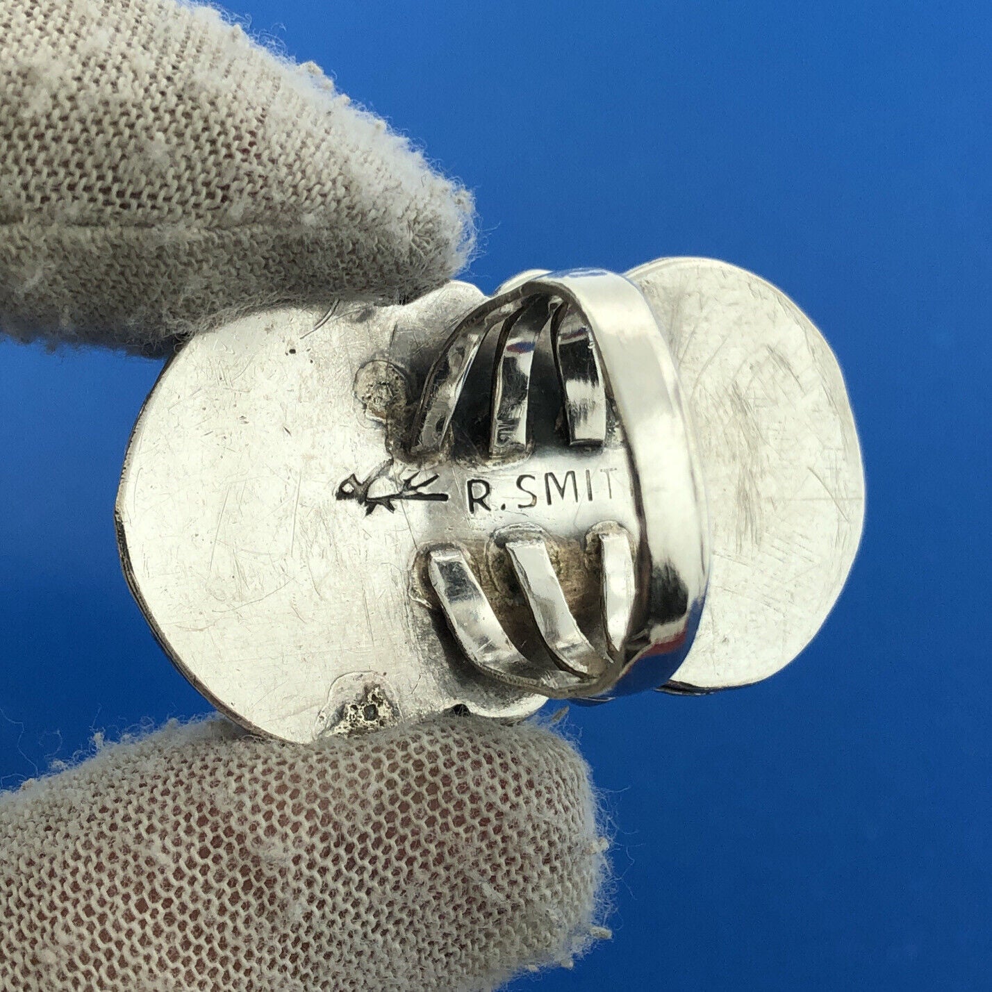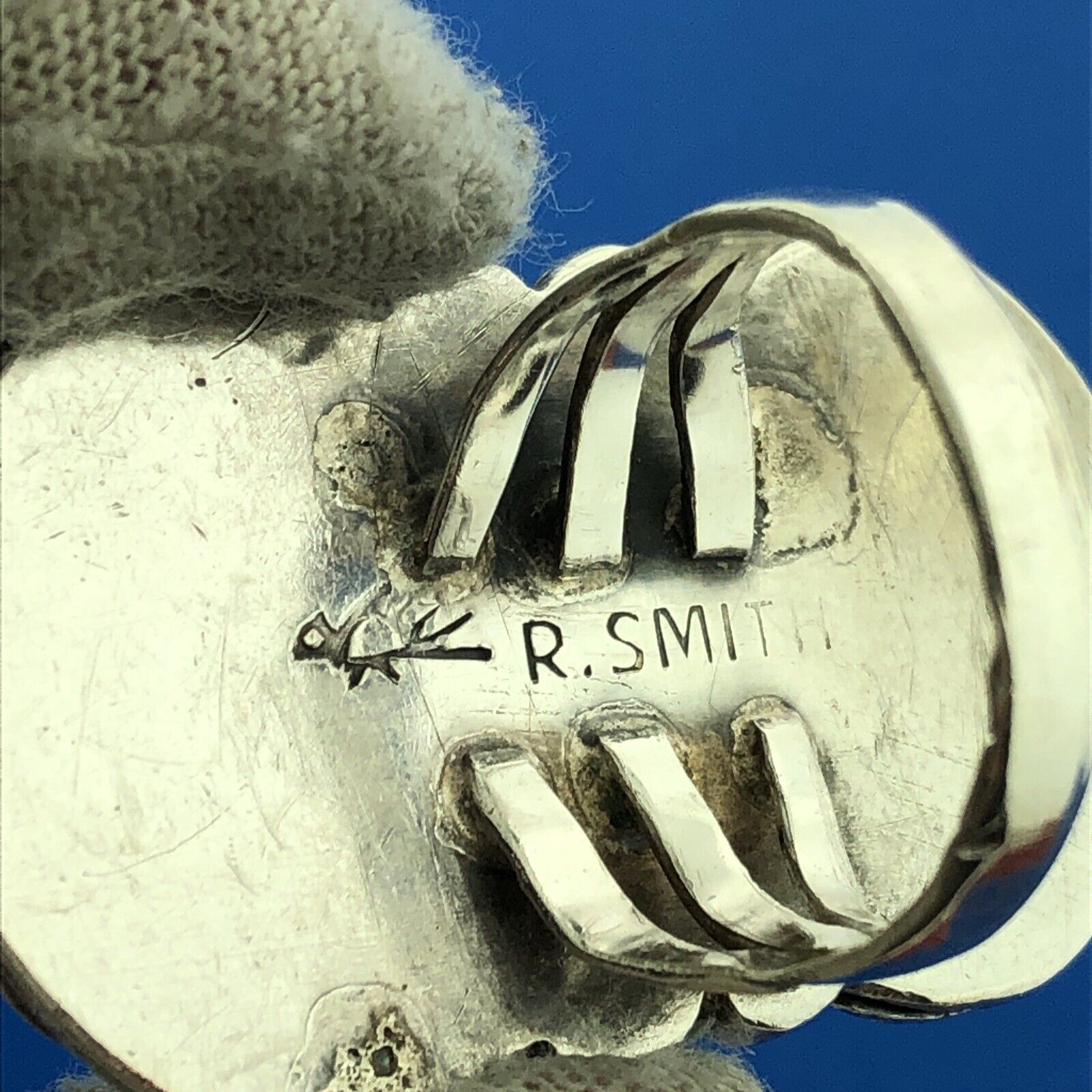 - Native American R Smith 925 Sterling Silver Green Turquoise Squash Blossom Ring