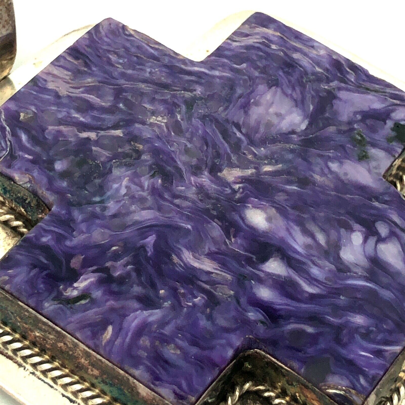 - Native American Signed 925 Sterling Silver Charoite Statement Cross Pendant