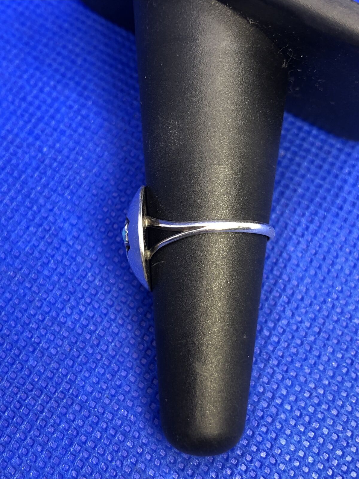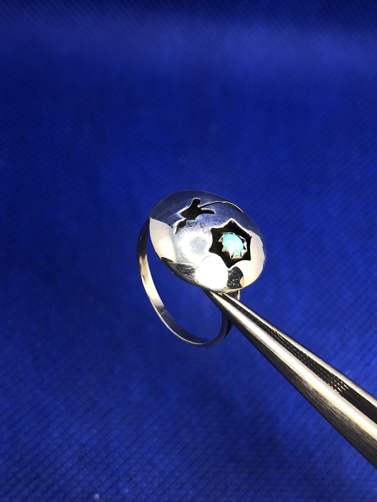- Native American Signed 925 Sterling Silver Turquoise Cabochon Storyteller Ring