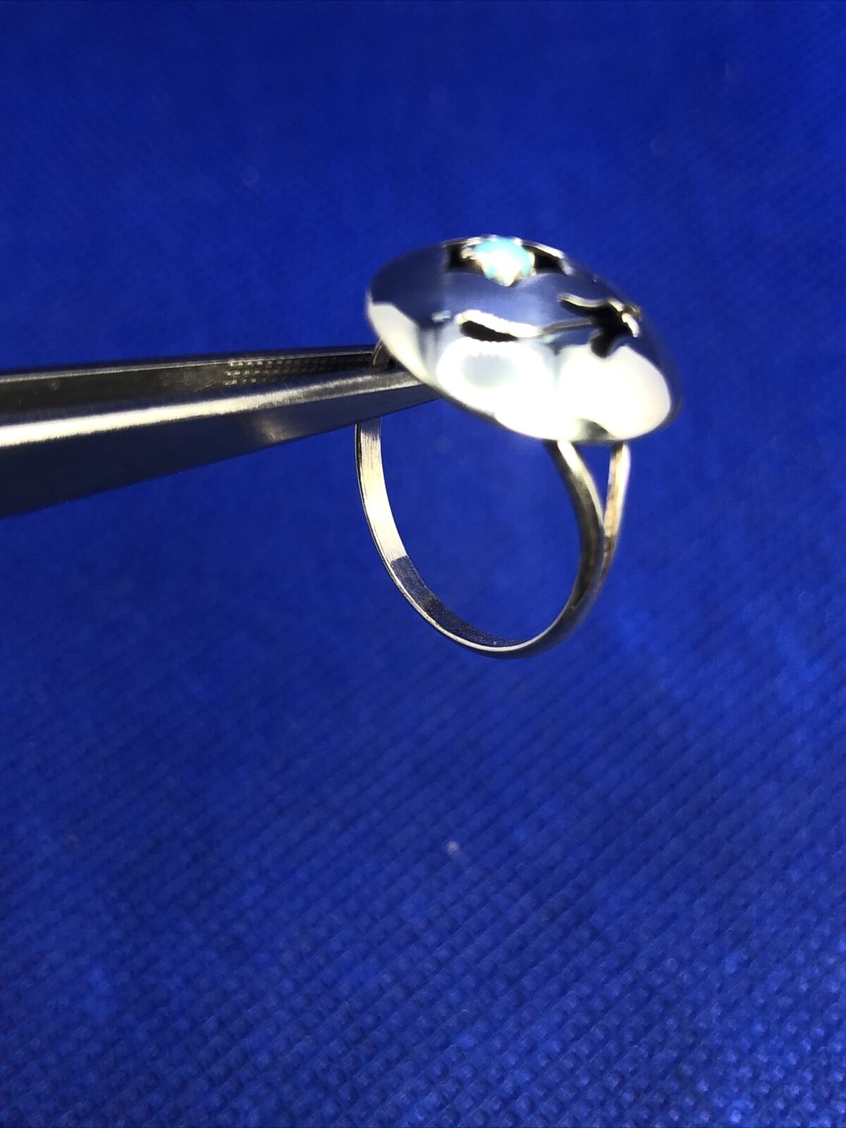 Native American Signed 925 Sterling Silver Turquoise Cabochon Storyteller Ring