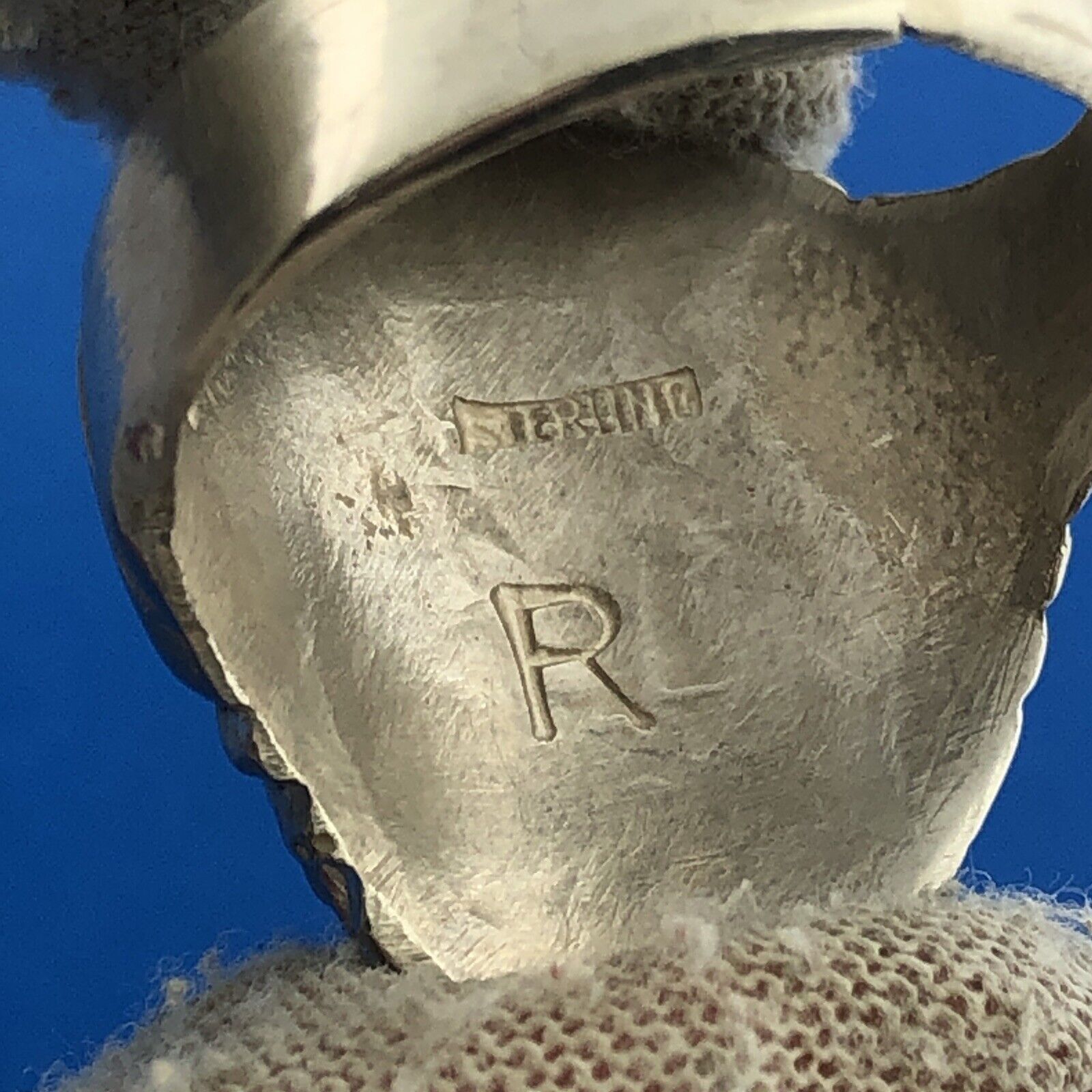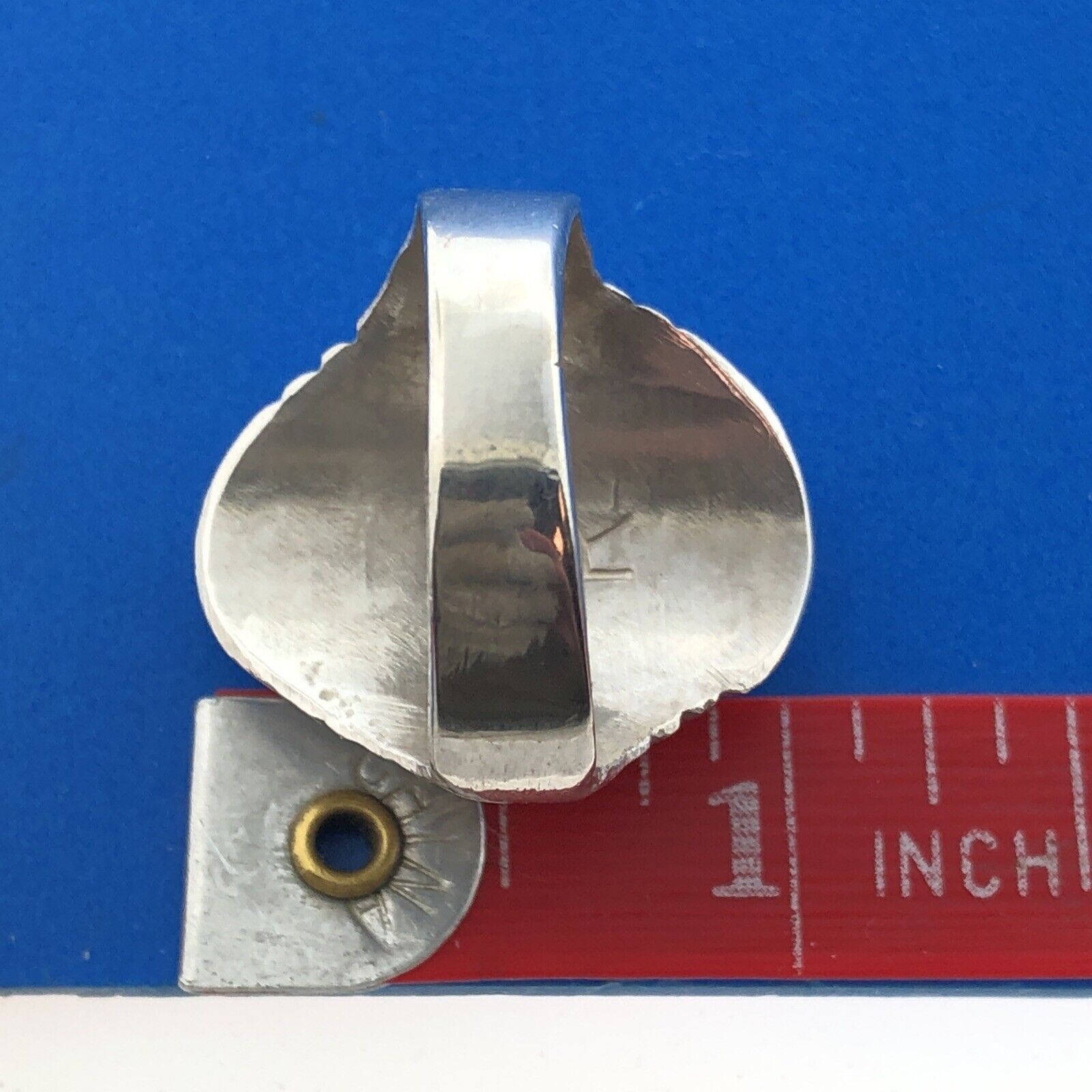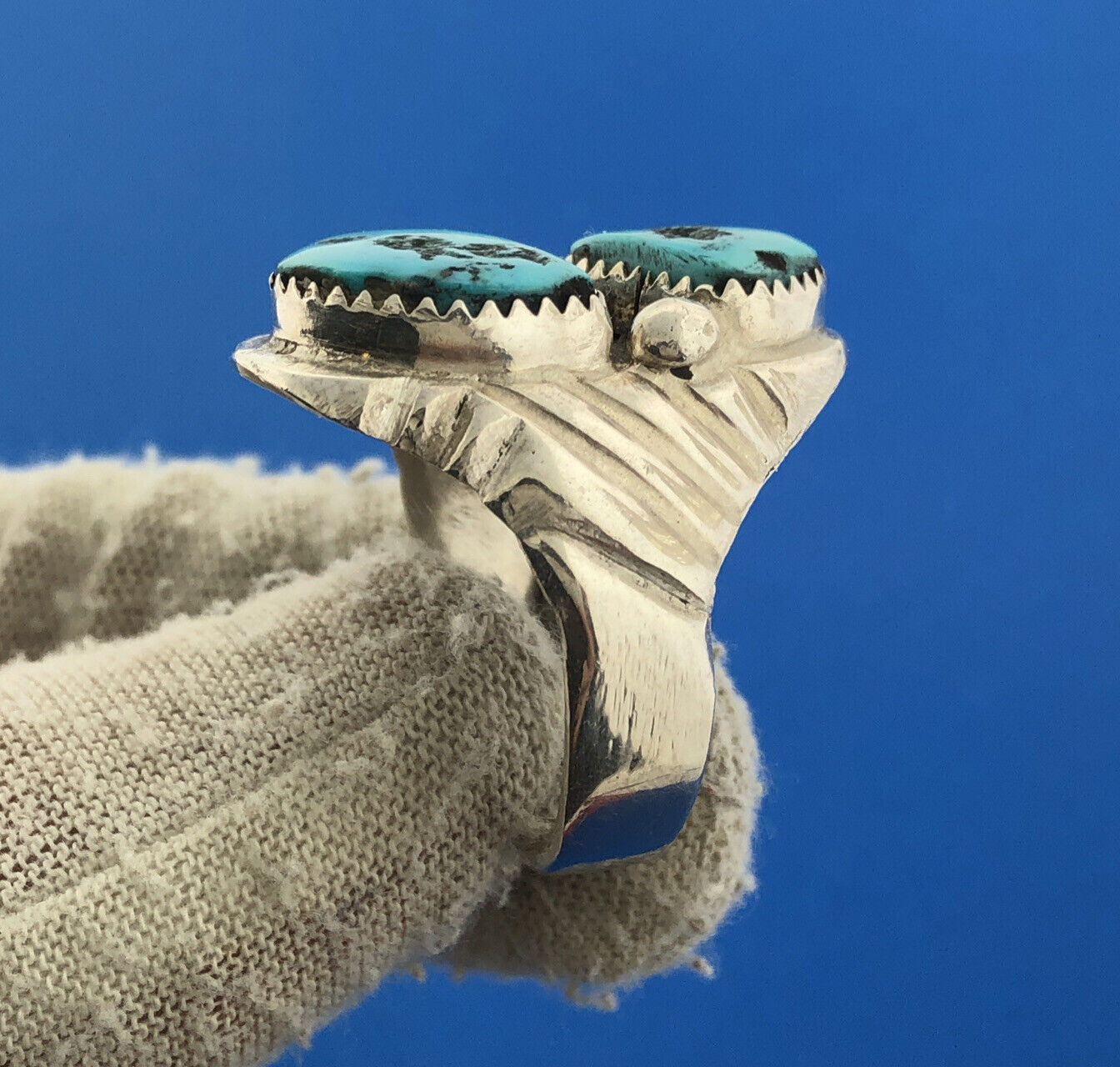 - Native American Signed R Sterling Silver Chunky Turquoise Cabochon Unisex Ring