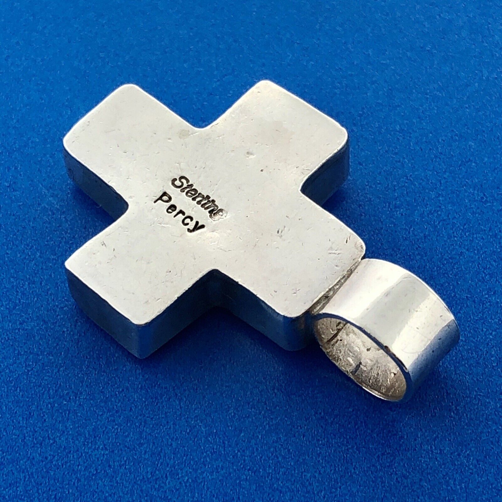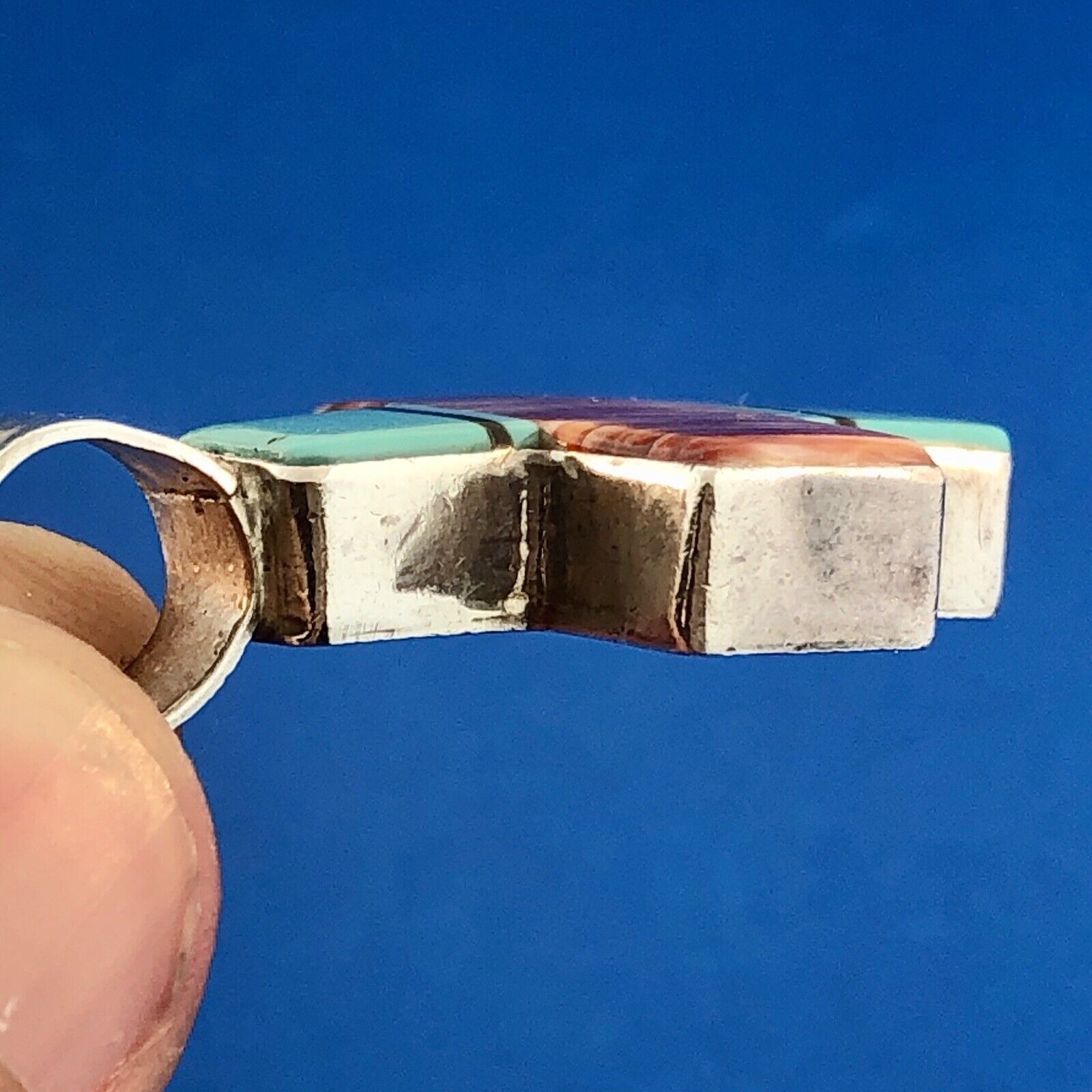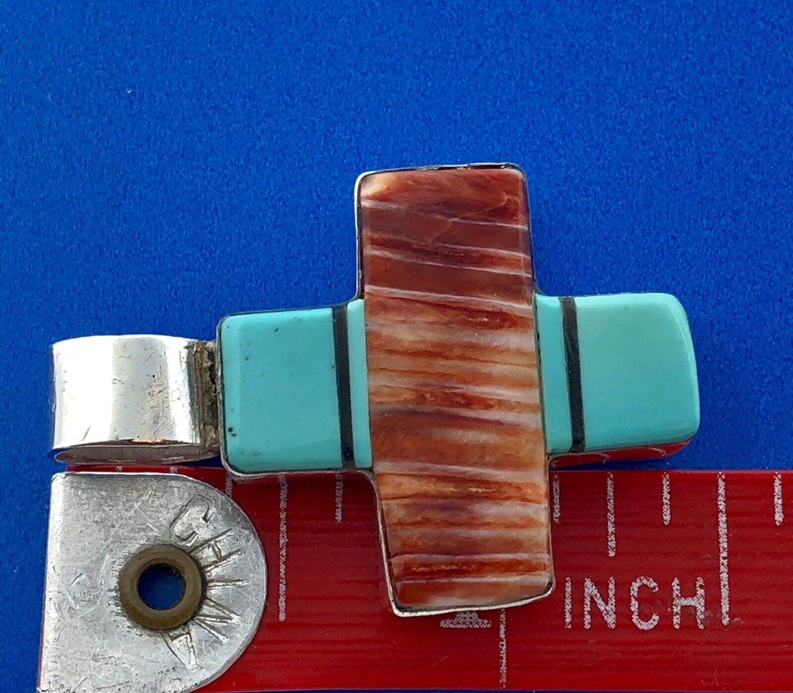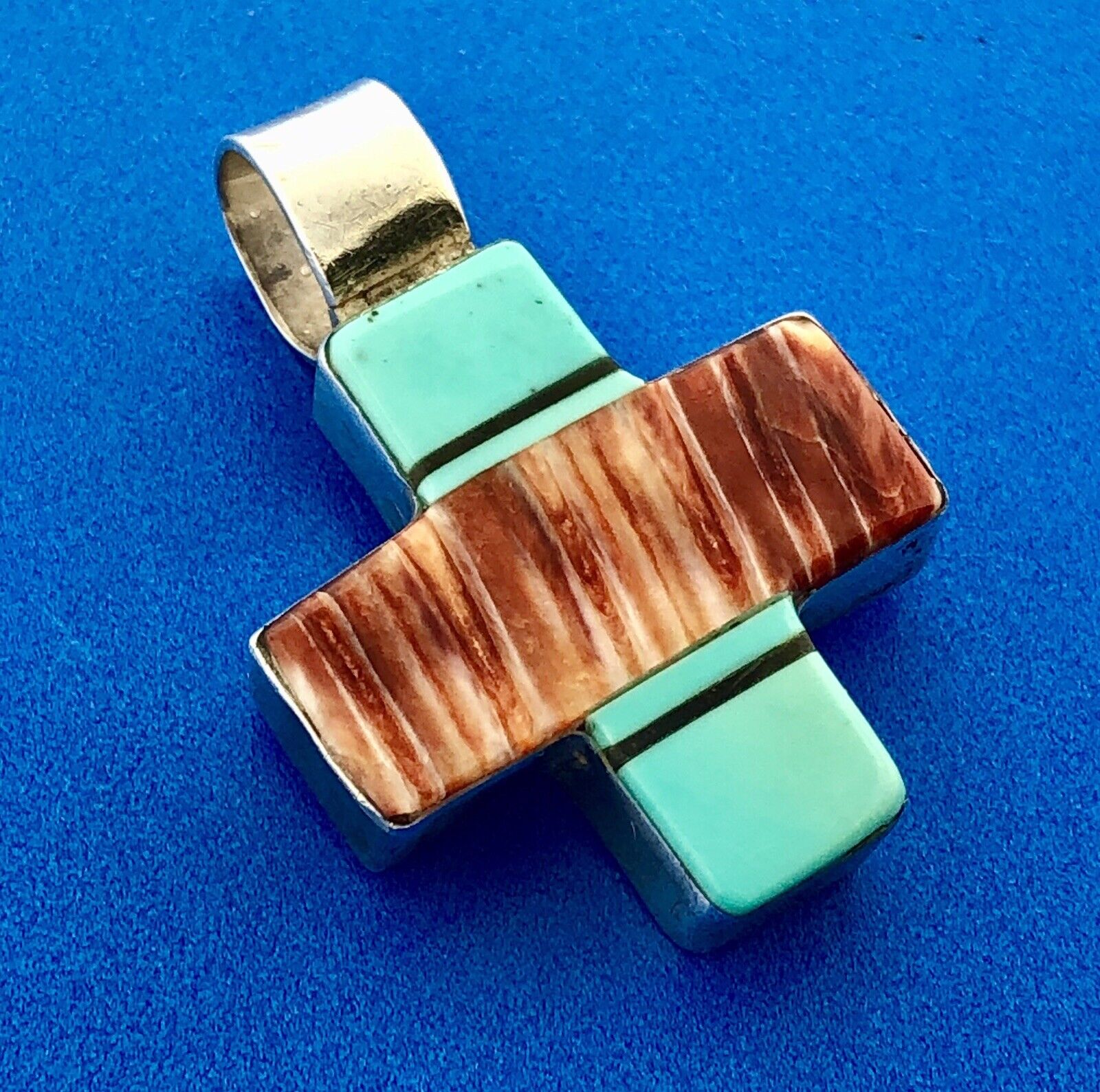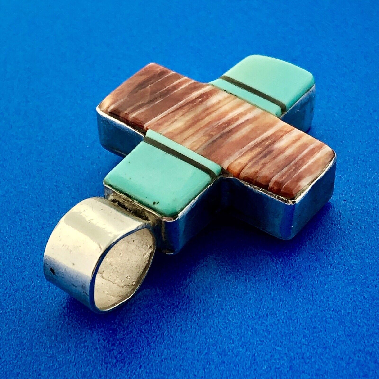 - Native American Signed Sterling Silver Turquoise Black Onyx Jasper Cross Pendant