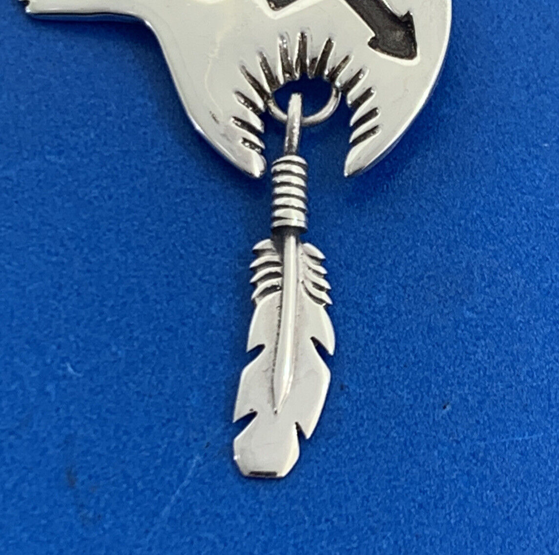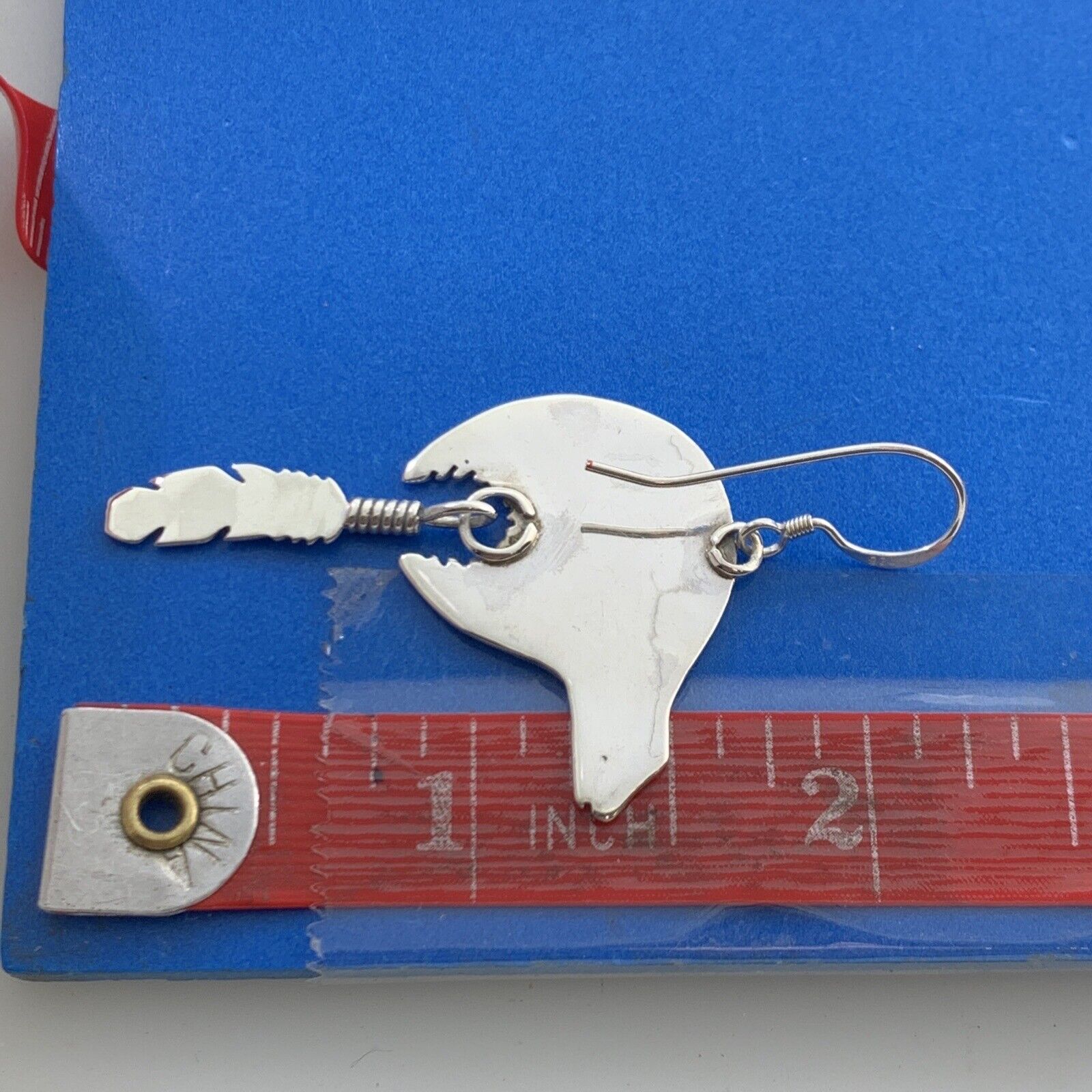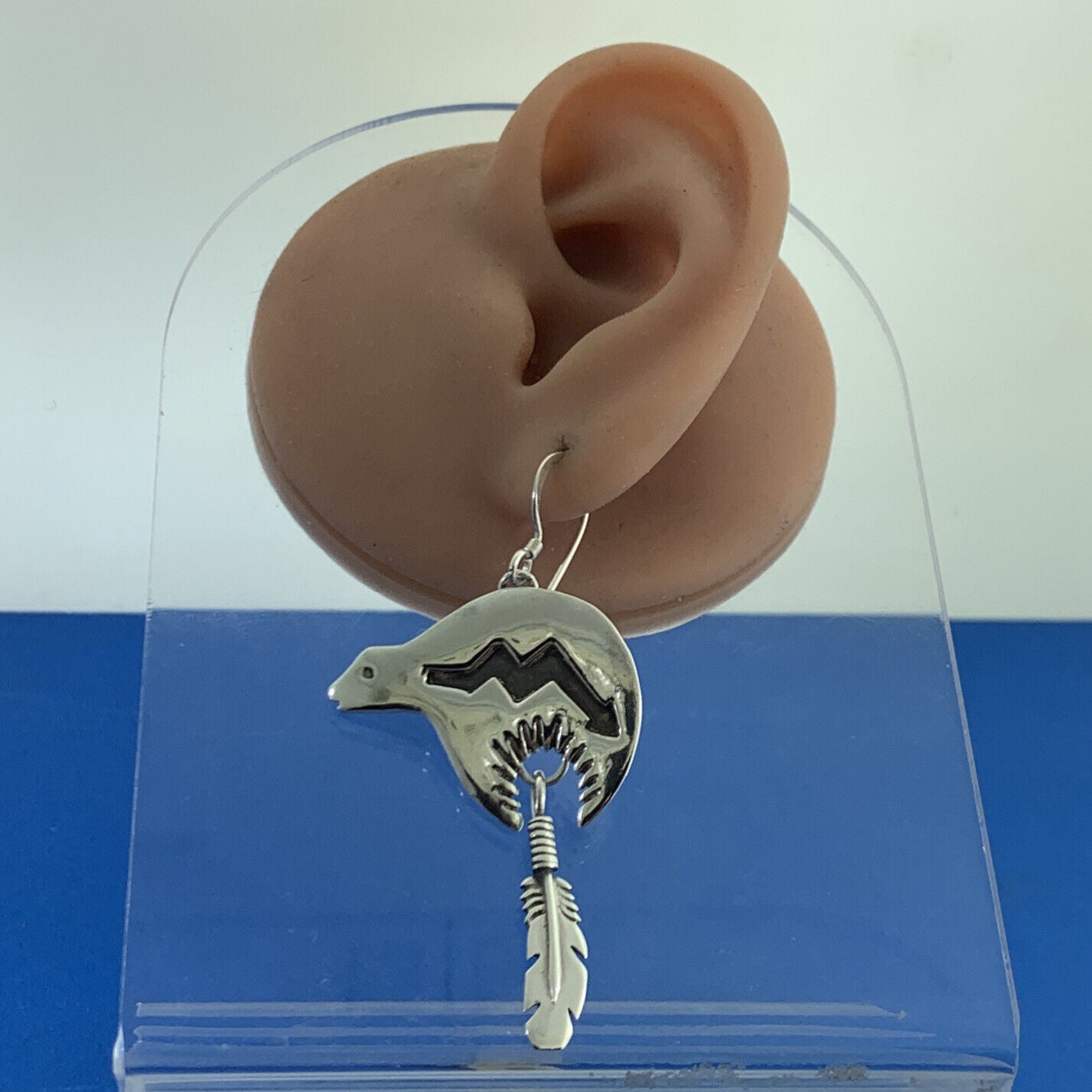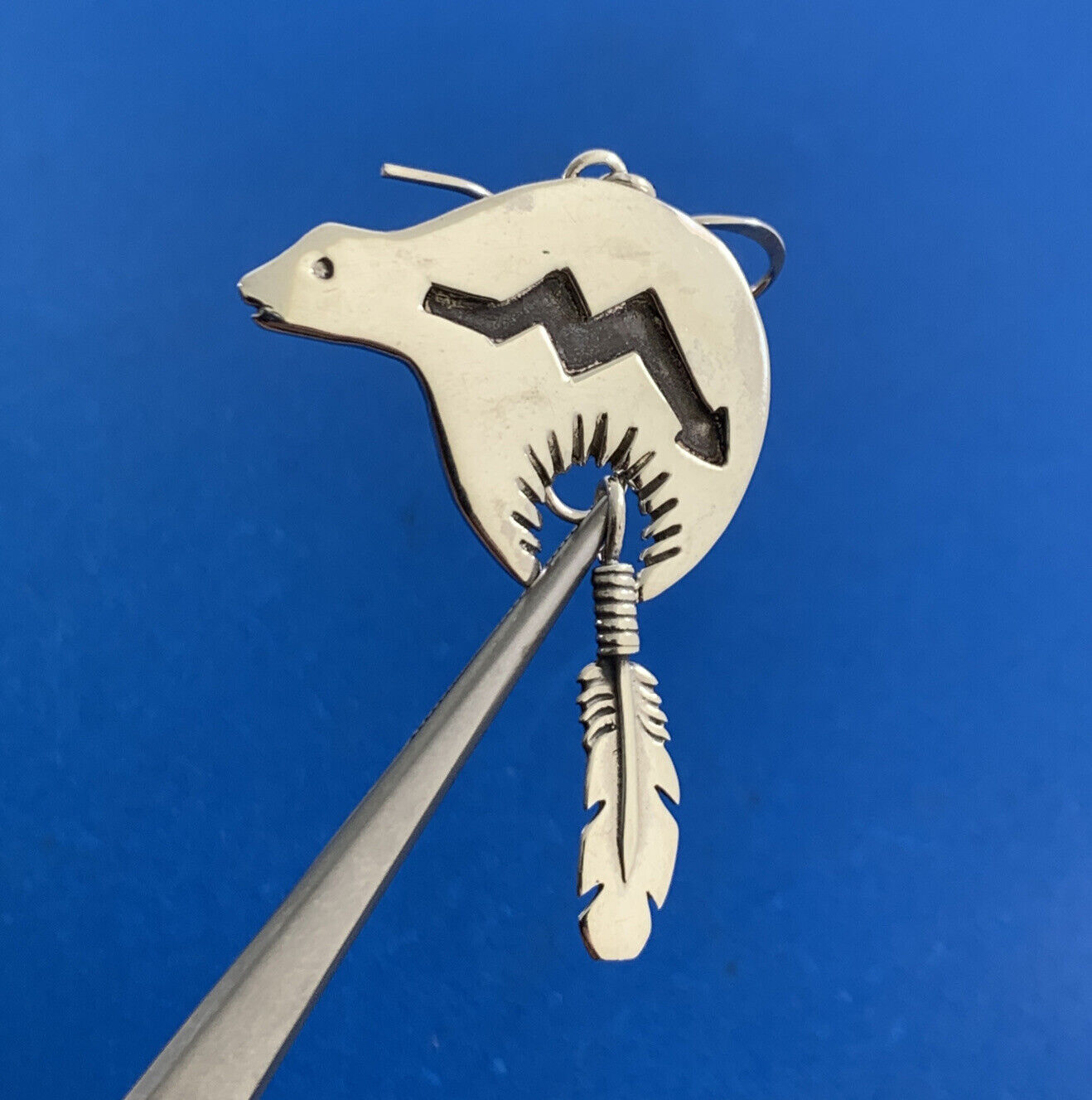 - Native American 925 Sterling Silver Concho Bear Feather Drop Storyteller Earrings