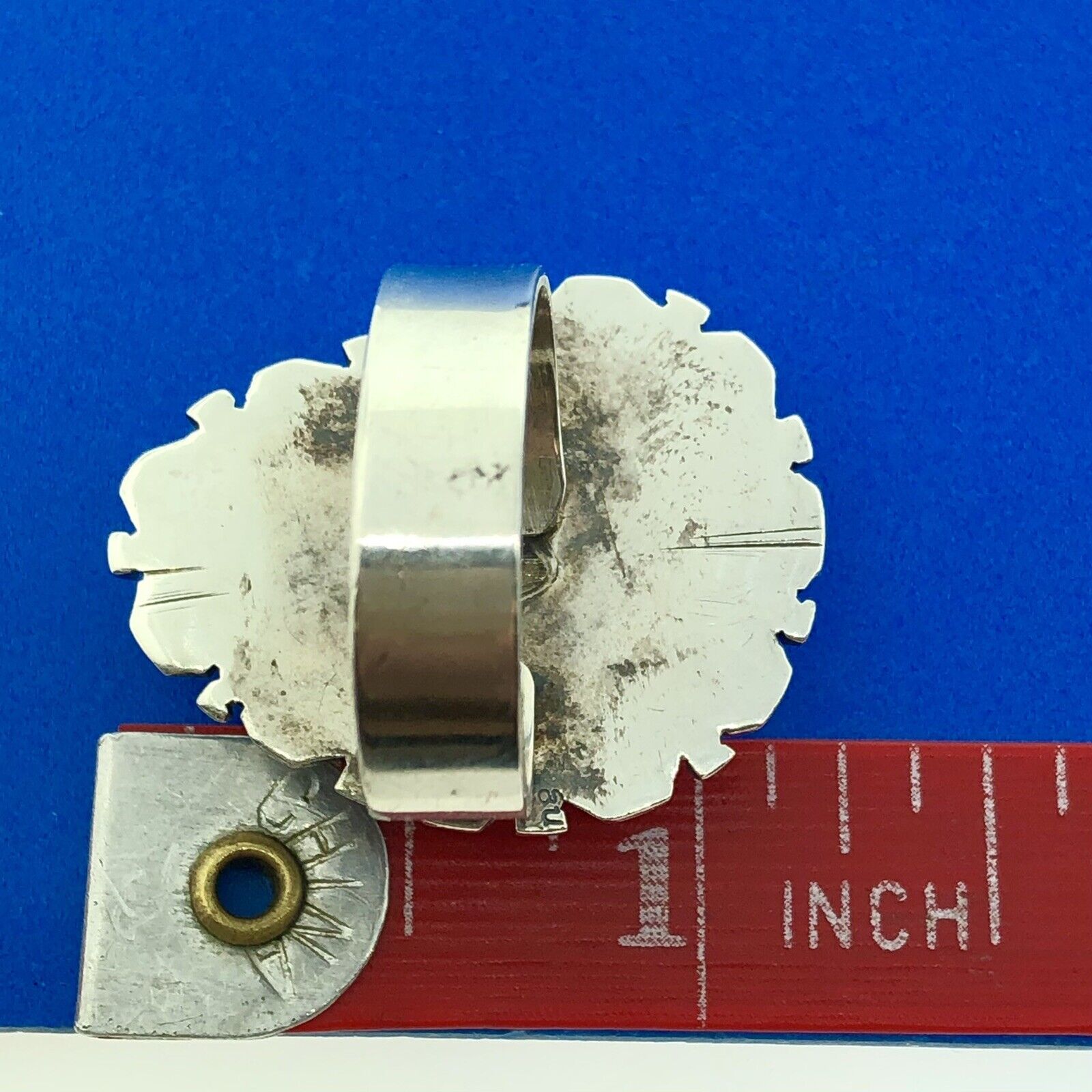 Native American Unsigned 925 Sterling Silver Turquoise Trilliant Statement Ring