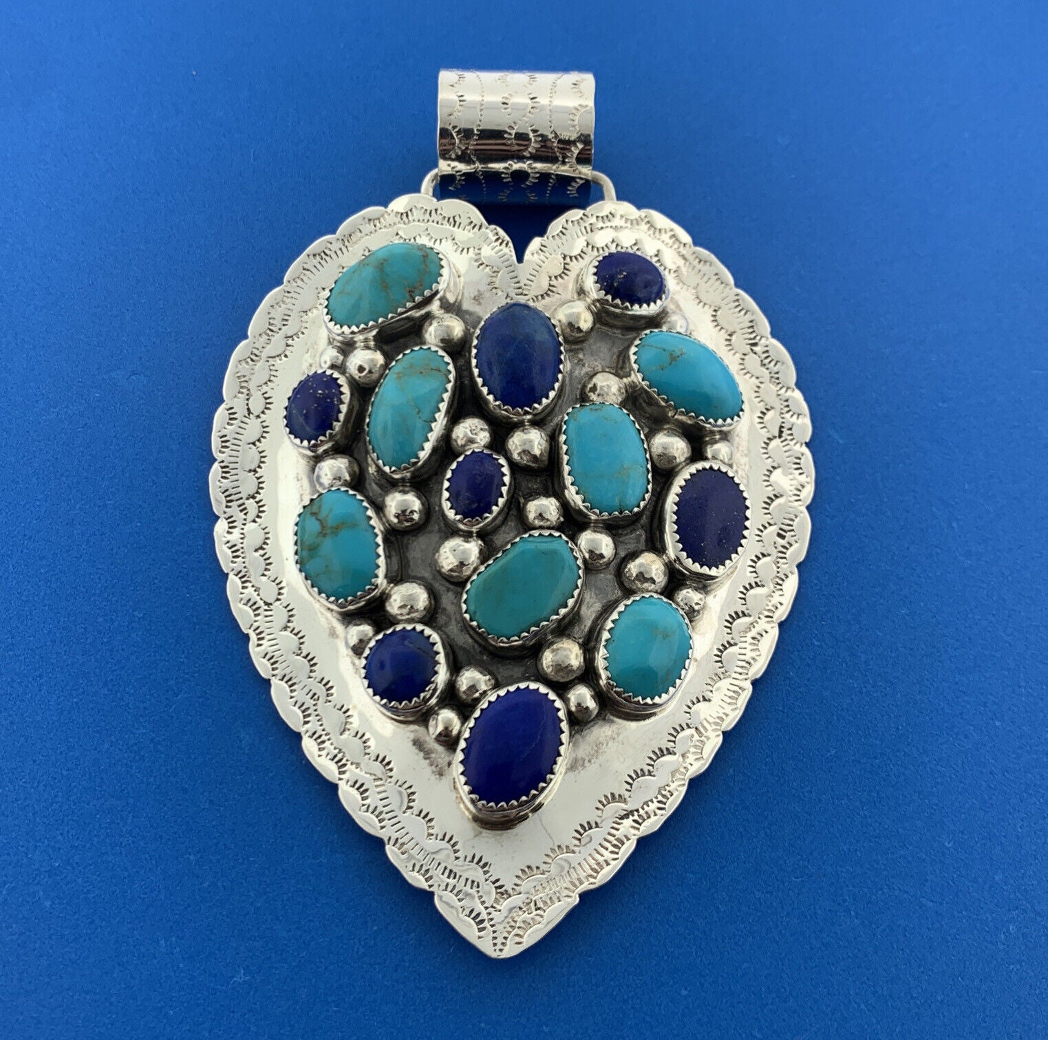 - Navajo Designer ES Elaine Sam Sterling Silver 925 Lapis Lazuli Turquoise Pendant