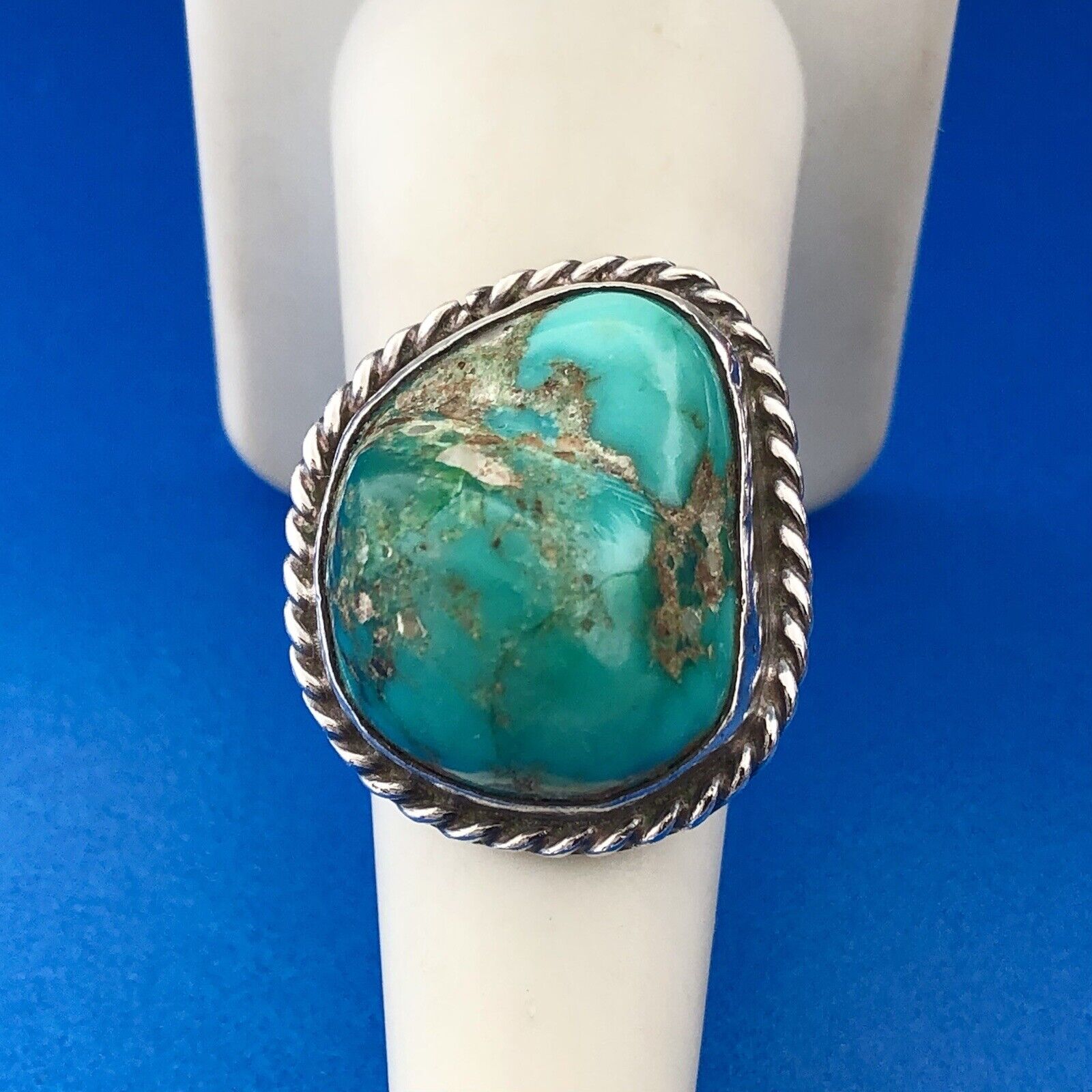 - Old Pawn 925 Sterling Silver Natural Turquoise Chunk Statement Finger Ring