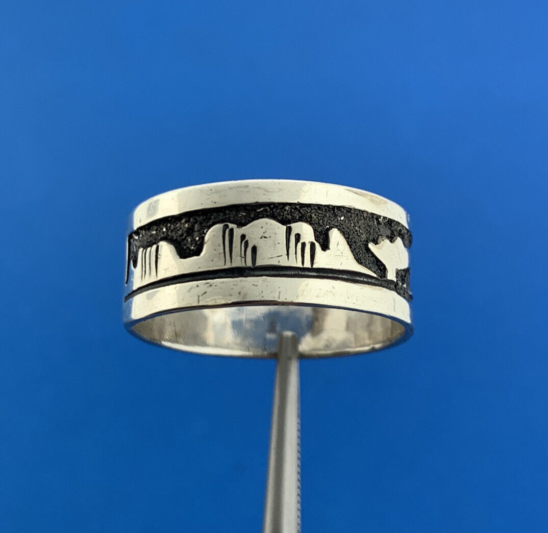 - Old Pawn Native American Unsigned 925 Sterling Silver Storyteller Wide Band Ring