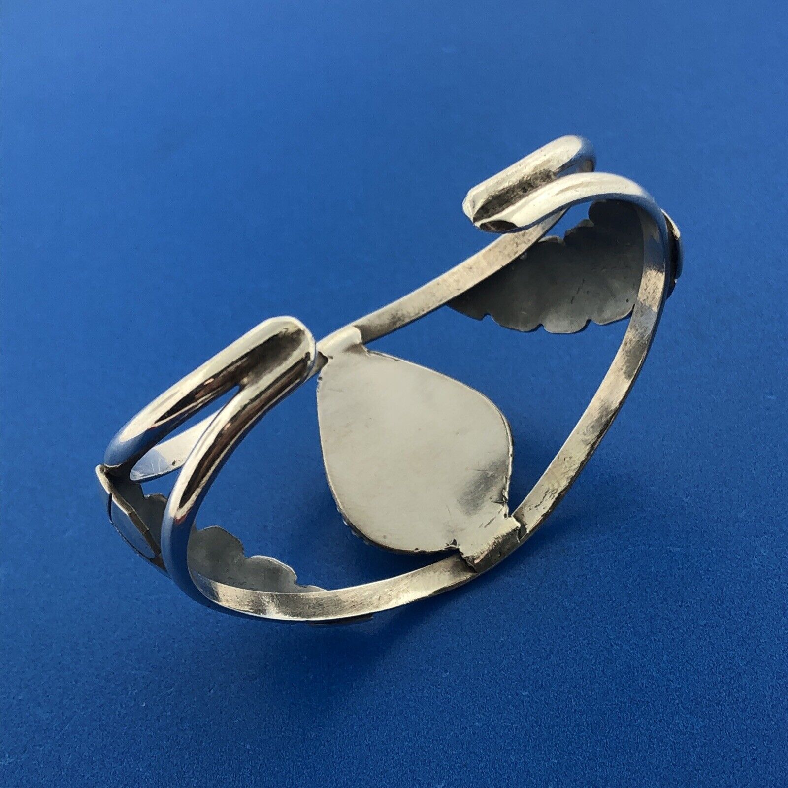 - Old Pawn Sterling Silver Chunky Turquoise Cabochon Squash Blossom Cuff Bracelet