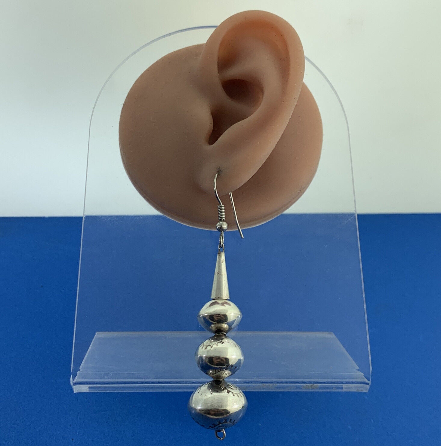 Old Pawn Storyteller 925 Sterling Silver Graduated 3 Bead Drop Dangle Earrings