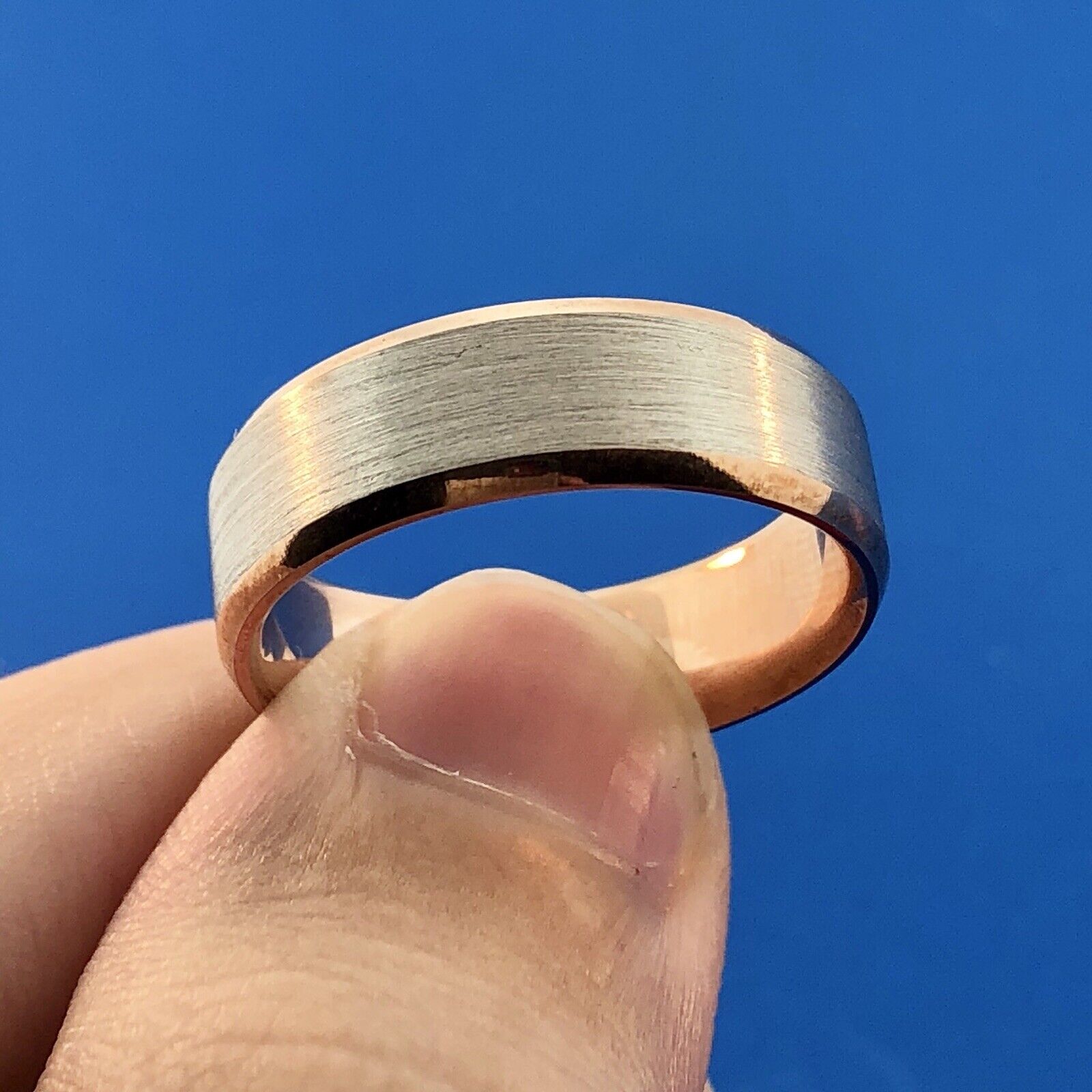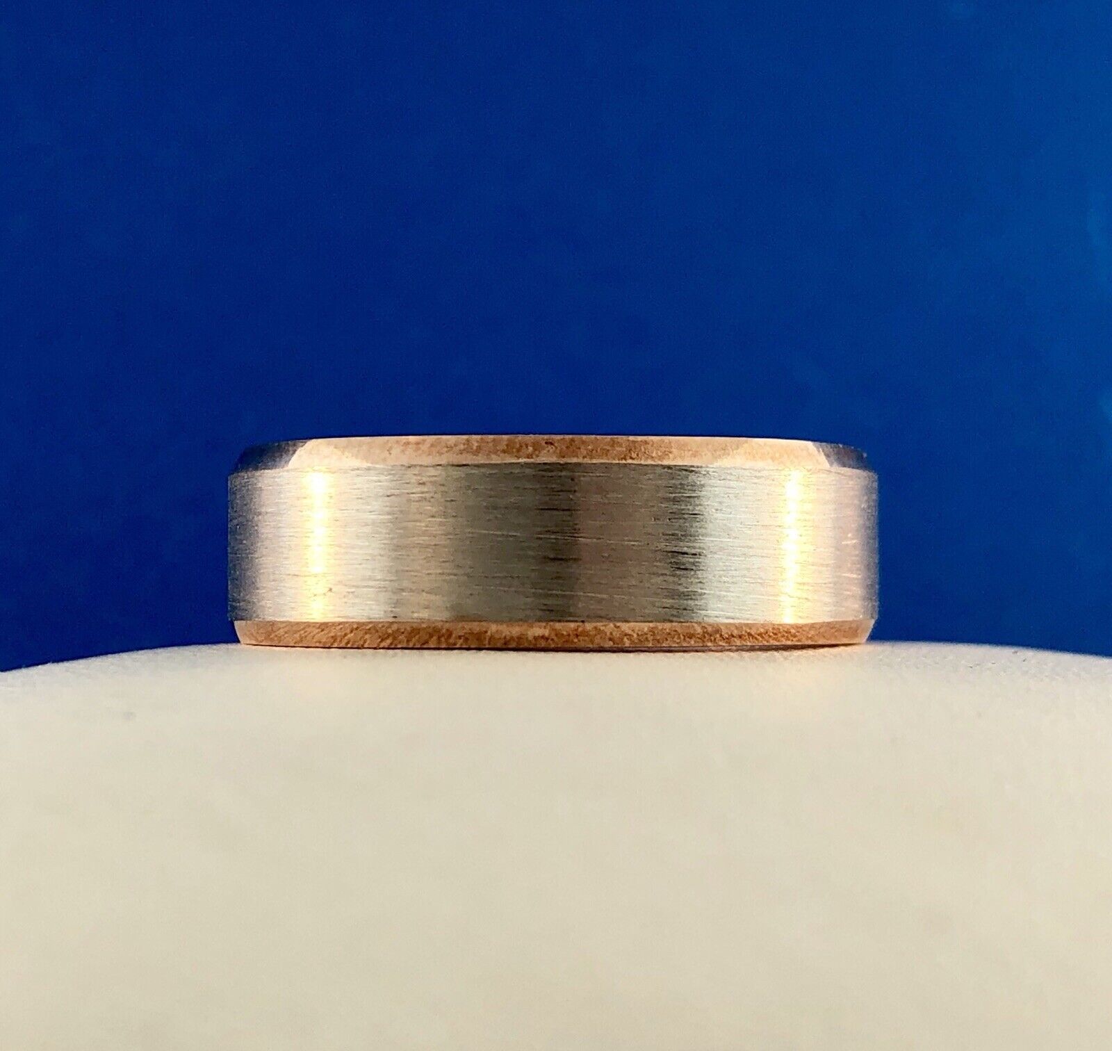 - Popular 14K White Rose Gold Brushed Polished 7 MM Unisex Wedding Cigar Band Ring