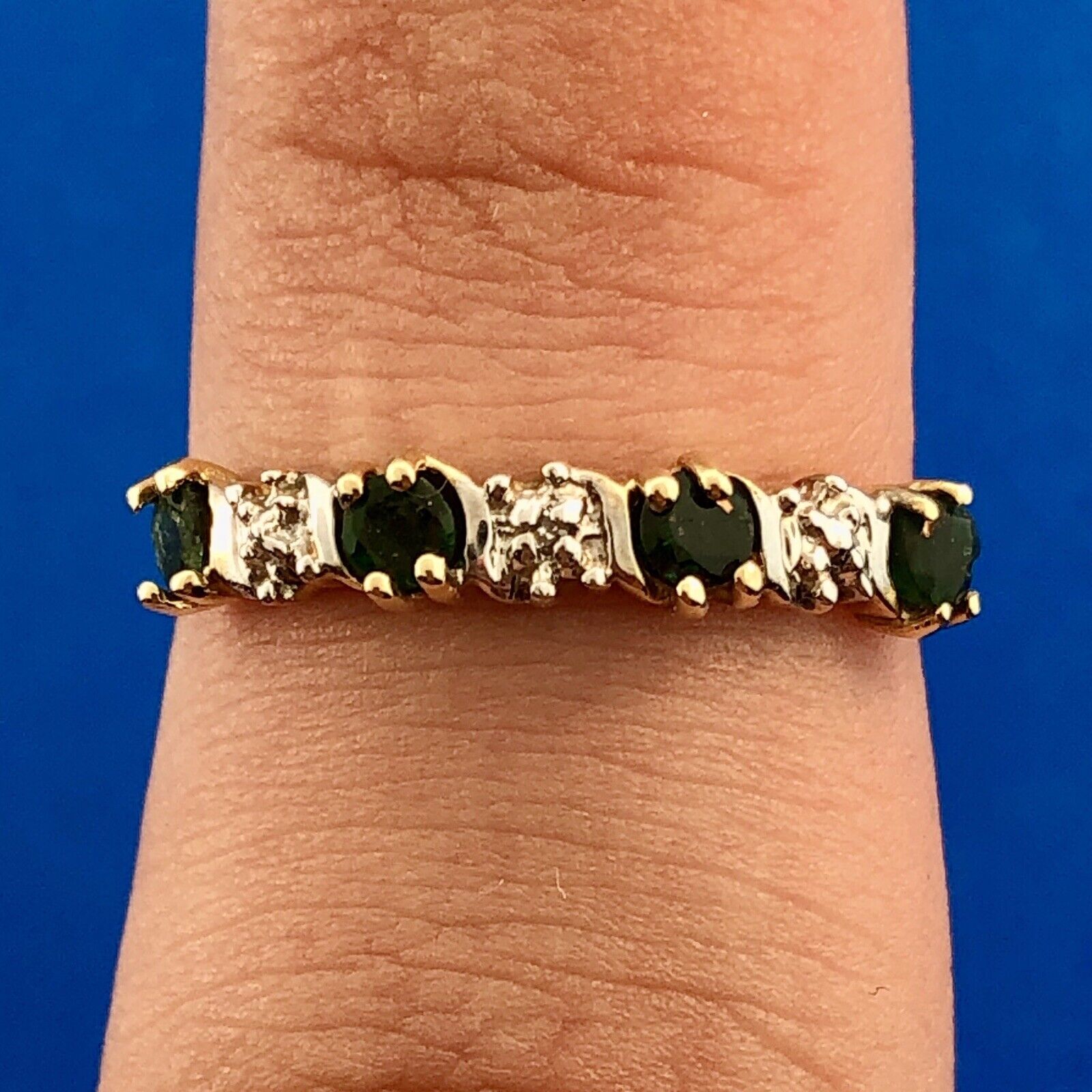 Retro 10K Yellow White Gold Emerald Diamond Stackable Anniversary Band Ring