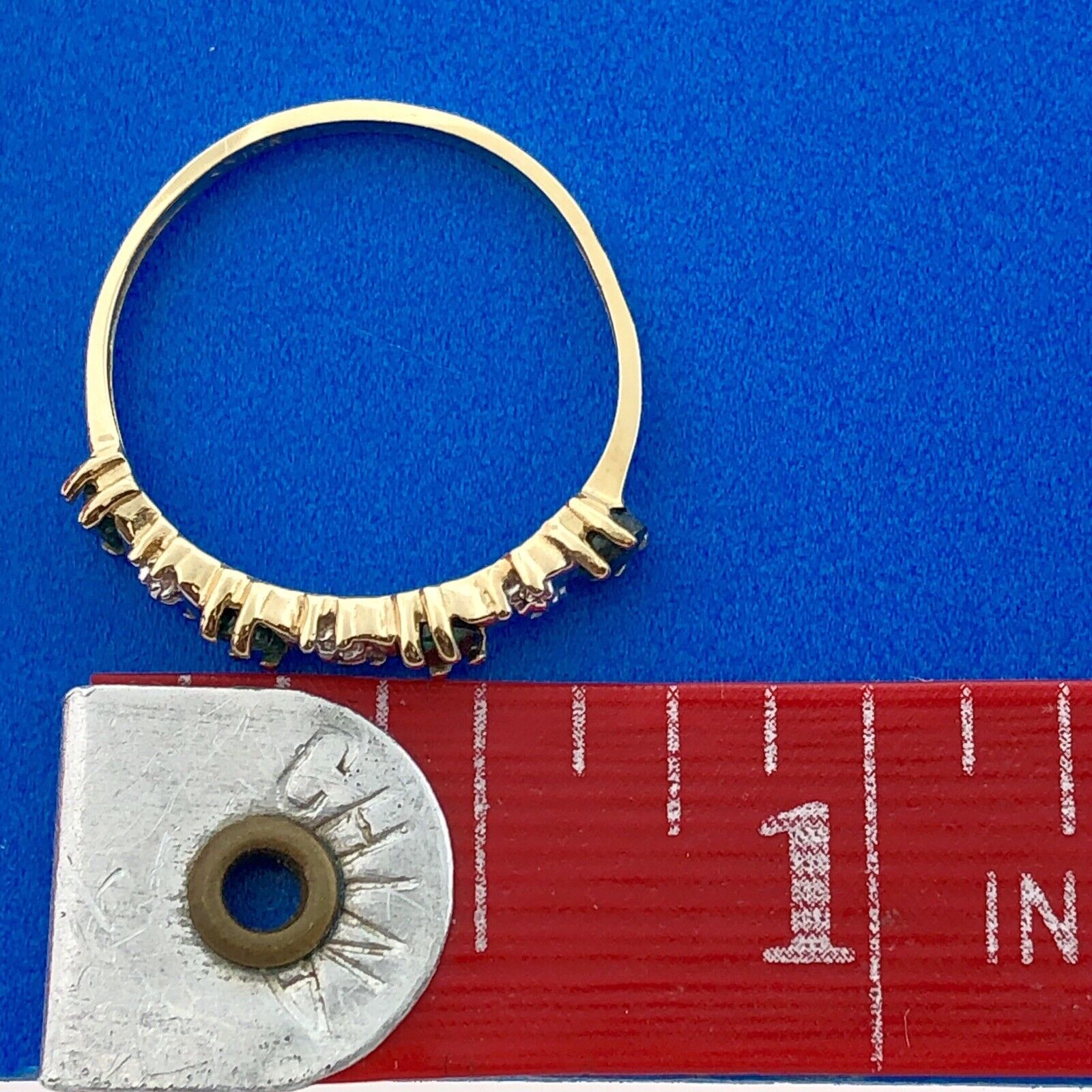 - Retro 10K Yellow White Gold Emerald Diamond Stackable Anniversary Band Ring