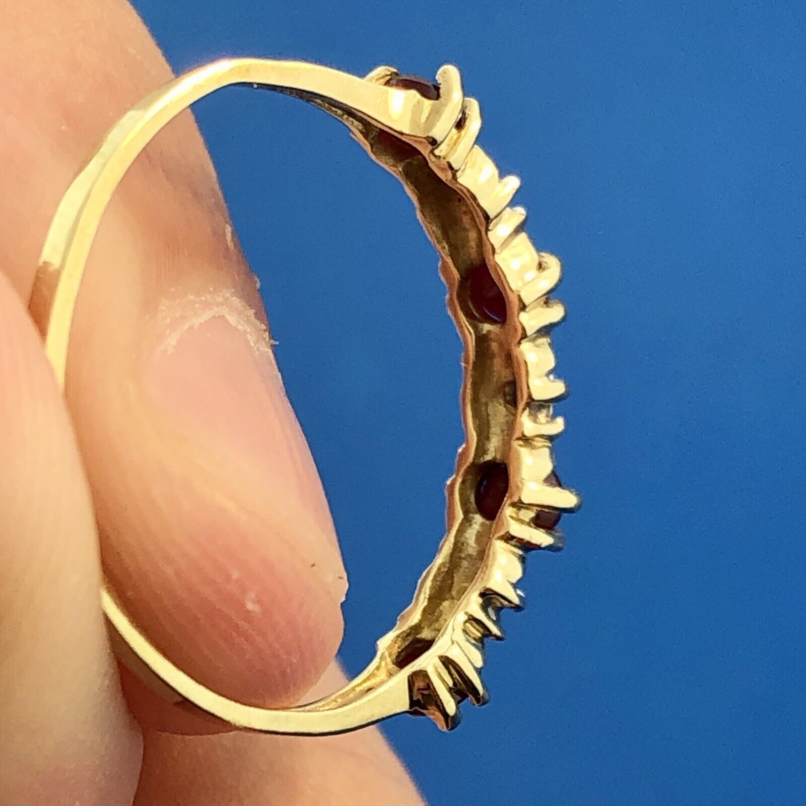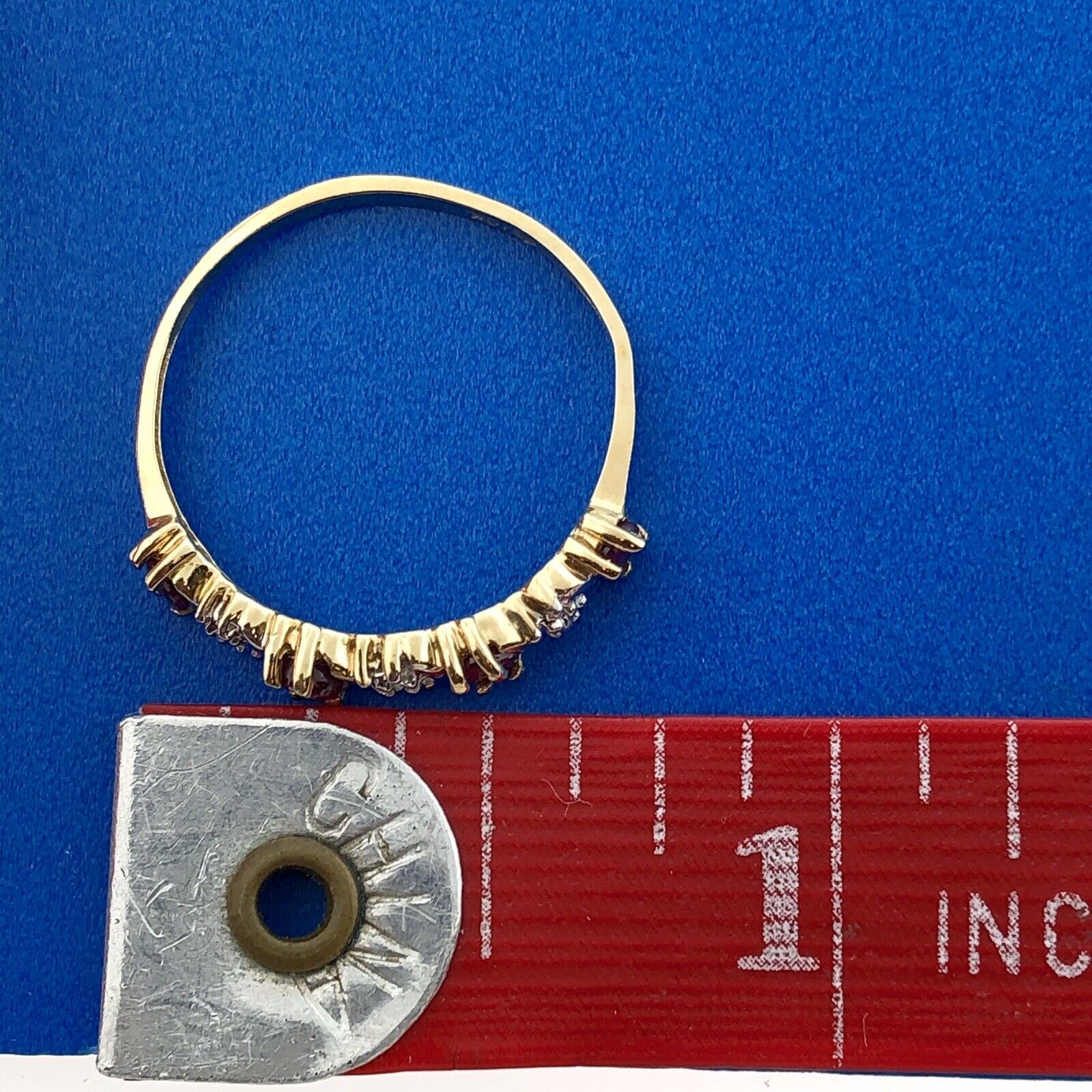 - Retro 10K Yellow White Gold Ruby Diamond Stackable Anniversary Band Ring