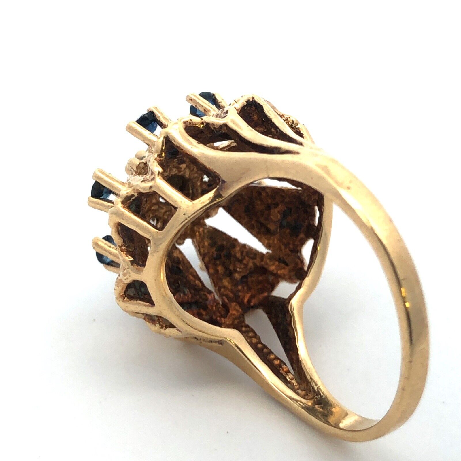 Retro 14K Yellow Gold Sapphire Diamond September Anniversary Princess Harem Ring