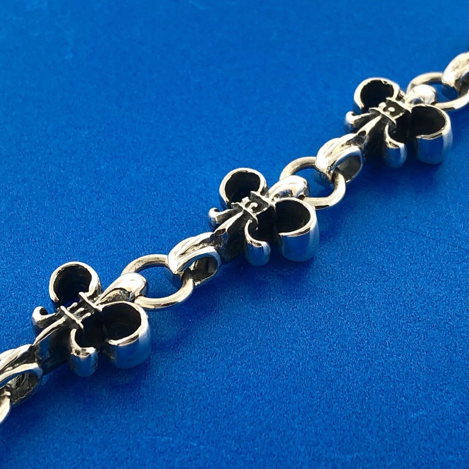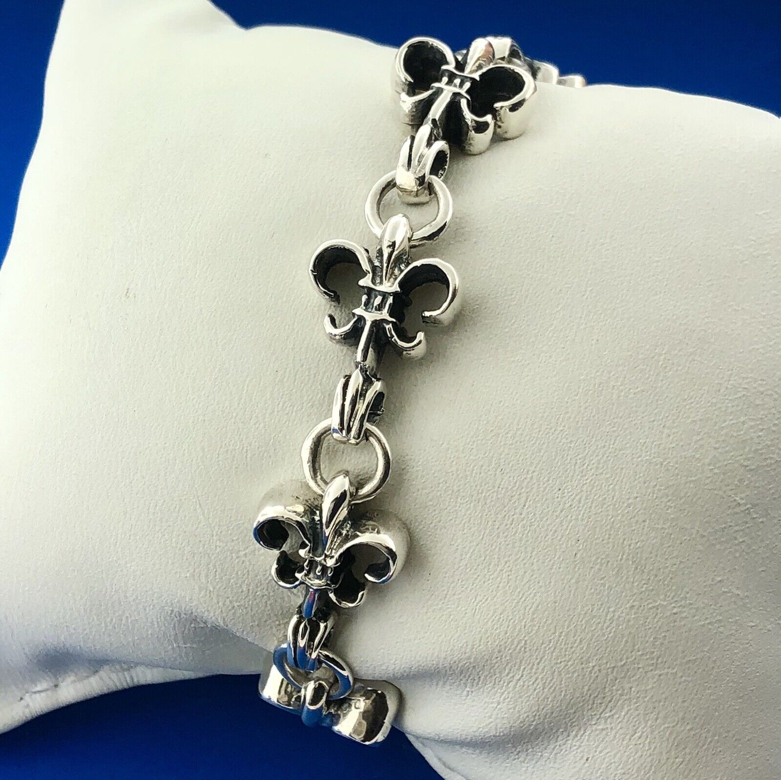 - Retro 925 Sterling Silver Fleur De Lis Link Panel Toggle Bracelet
