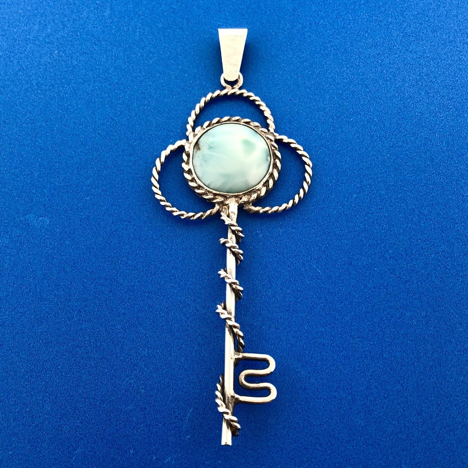- Retro 925 Sterling Silver Larimar Pectolite Skeleton Key Statement Pendant