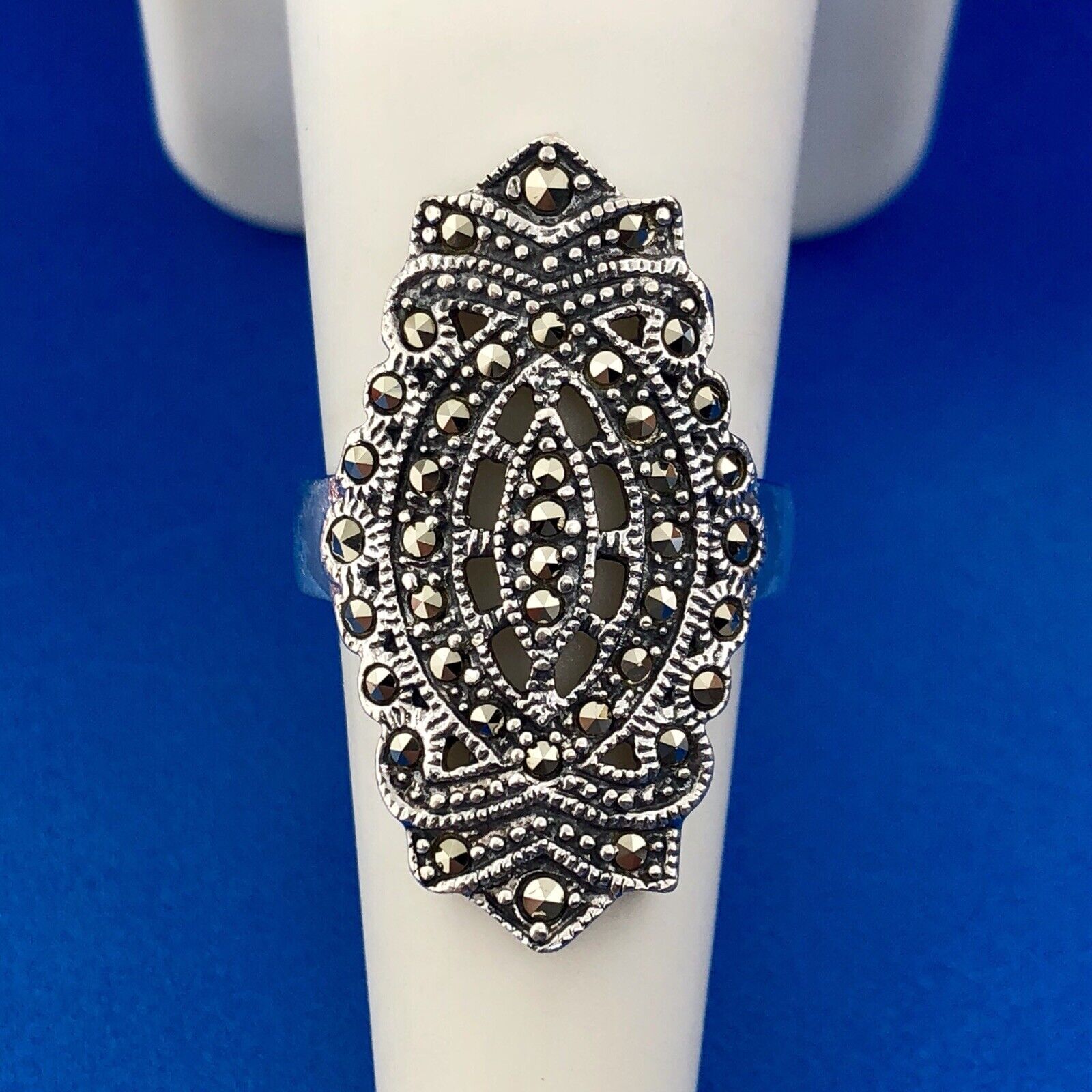 - Retro 925 Sterling Silver Marcasite Filigree Scroll Statement Cocktail Ring