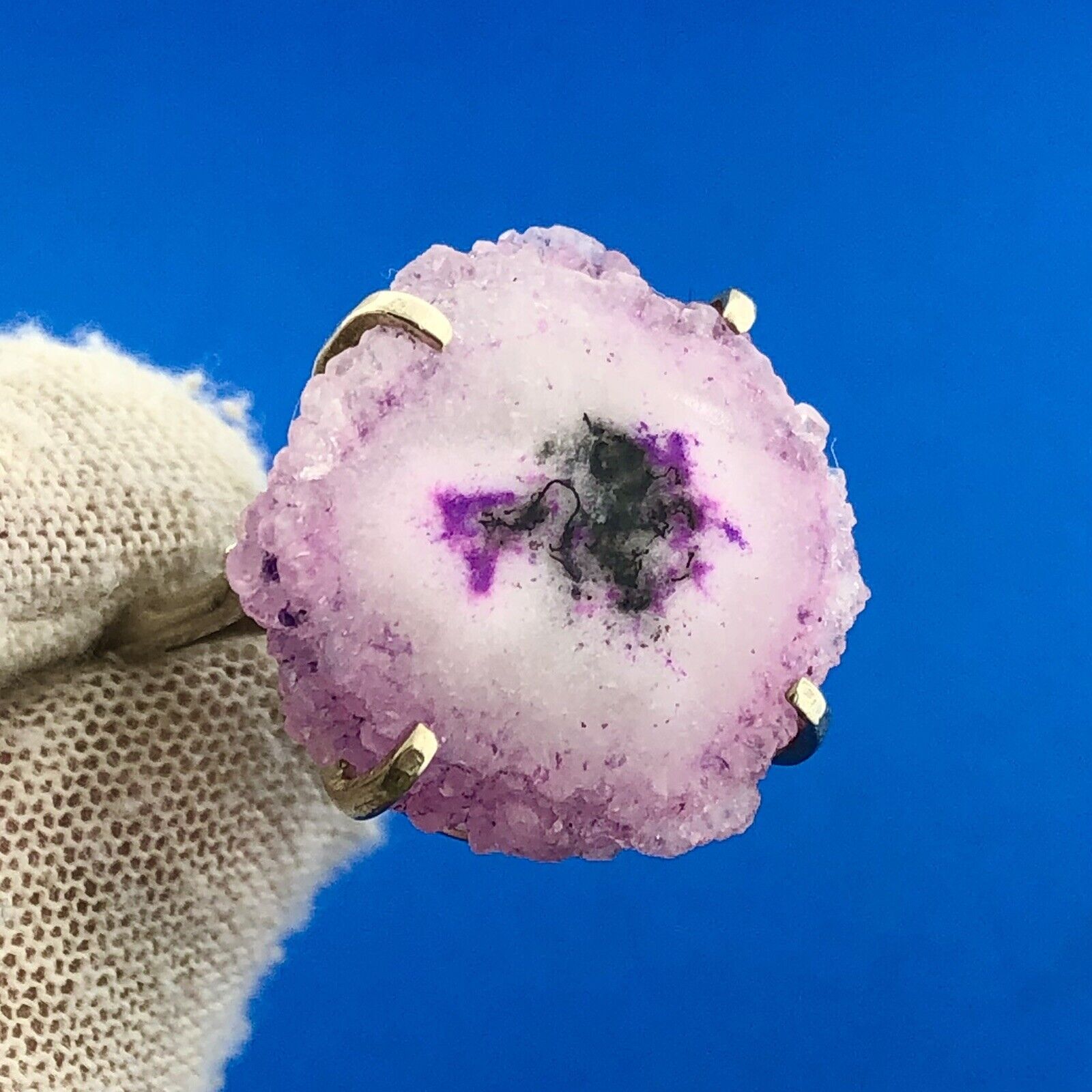 - Retro 925 Sterling Silver Purple Fuschia Pink White Druzy Quartz Statement Ring