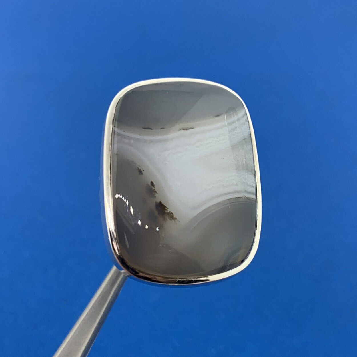- Retro 925 Sterling Silver Rectangle Banded Agate Statement Cocktail Ring