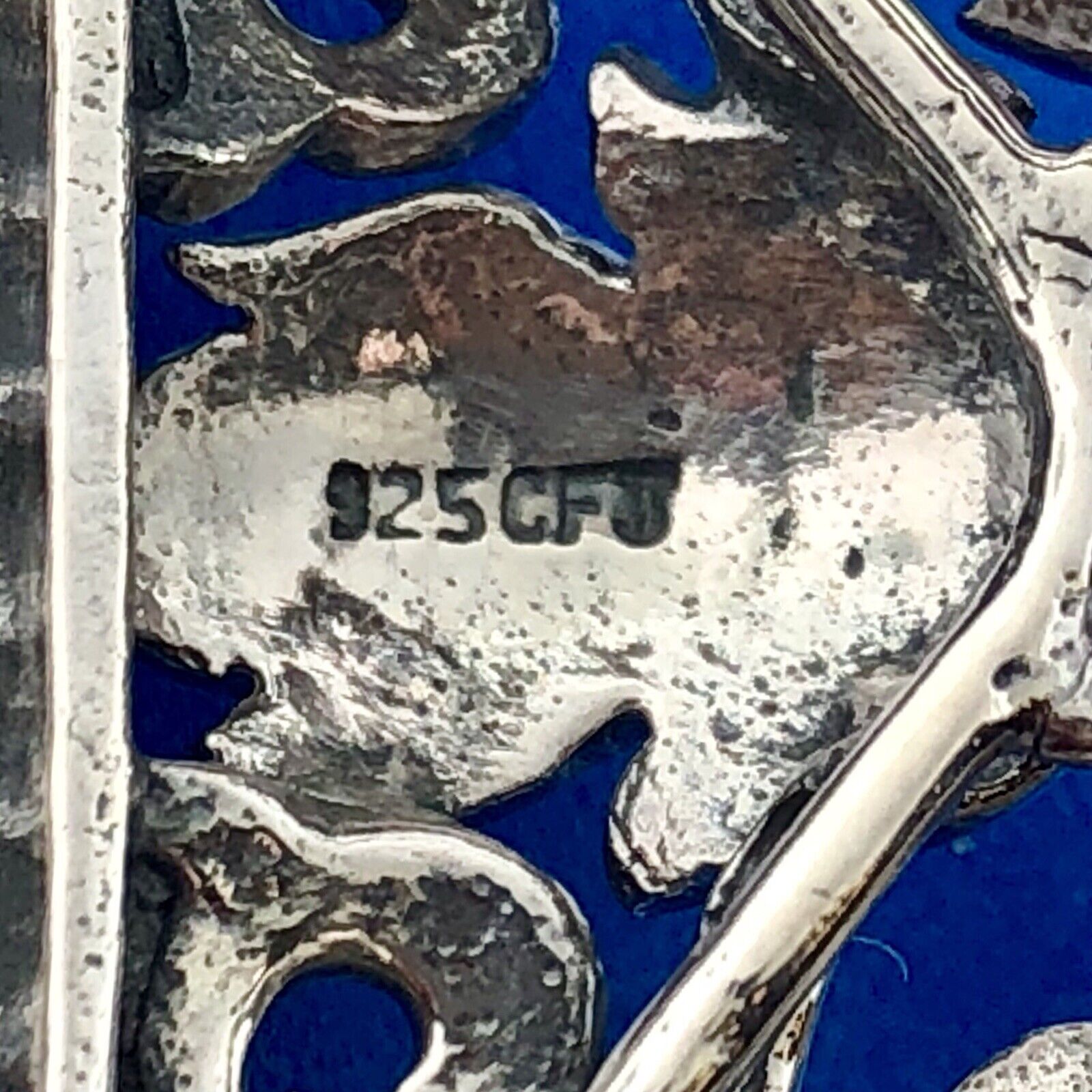 Retro 925 Sterling Silver Tiger Eye Beaded Open Scroll Work Statement Bracelet