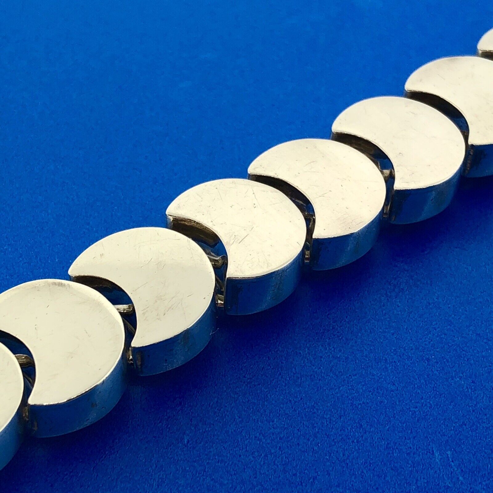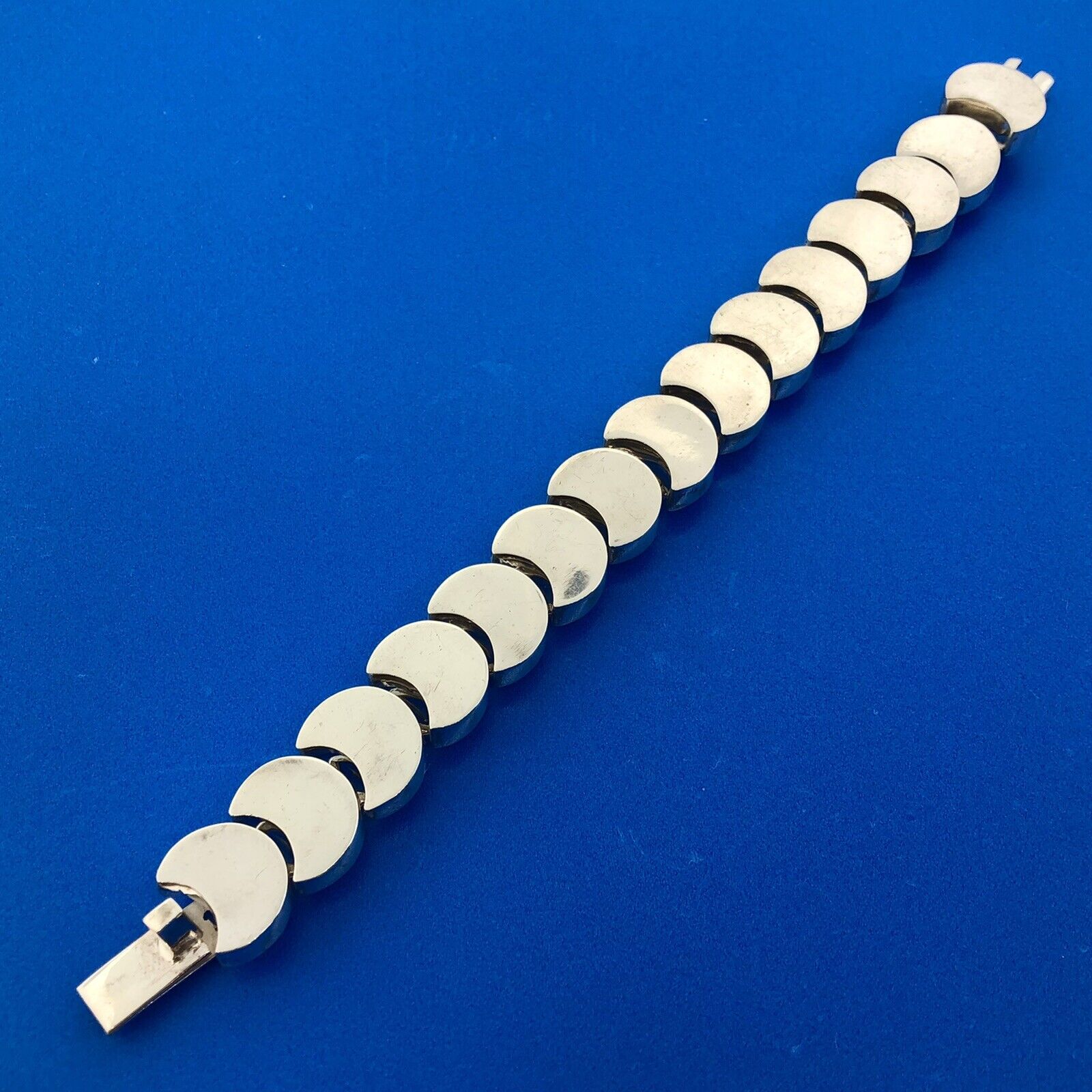Retro Mexico 925 Sterling Silver Modernist Moon Link Statement Panel Bracelet